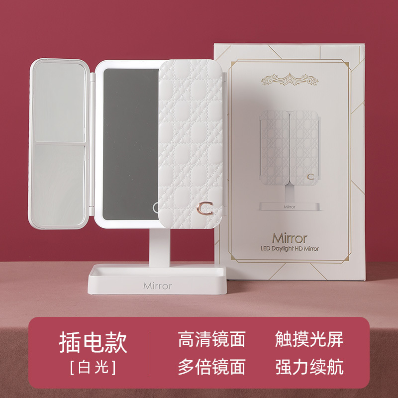 • 반투명 사각형 바닥 이중 도어 쉘 거울 접이식 거울 플러그인 모델 [백색광] HY303D-CD