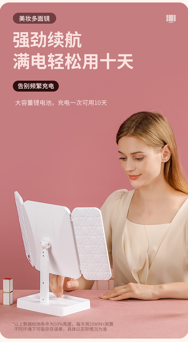 • 반투명 사각형 바닥 이중 도어 쉘 거울 접이식 거울 충전식 모델 [백색광] HY303D-1200