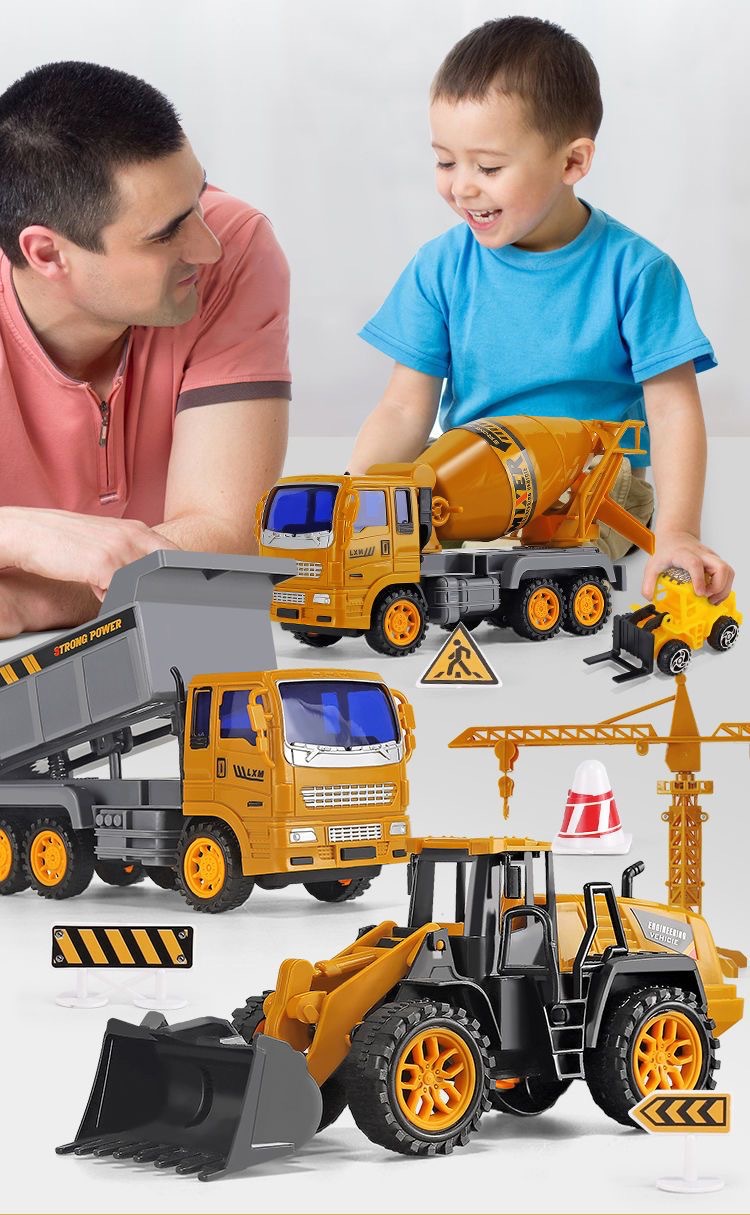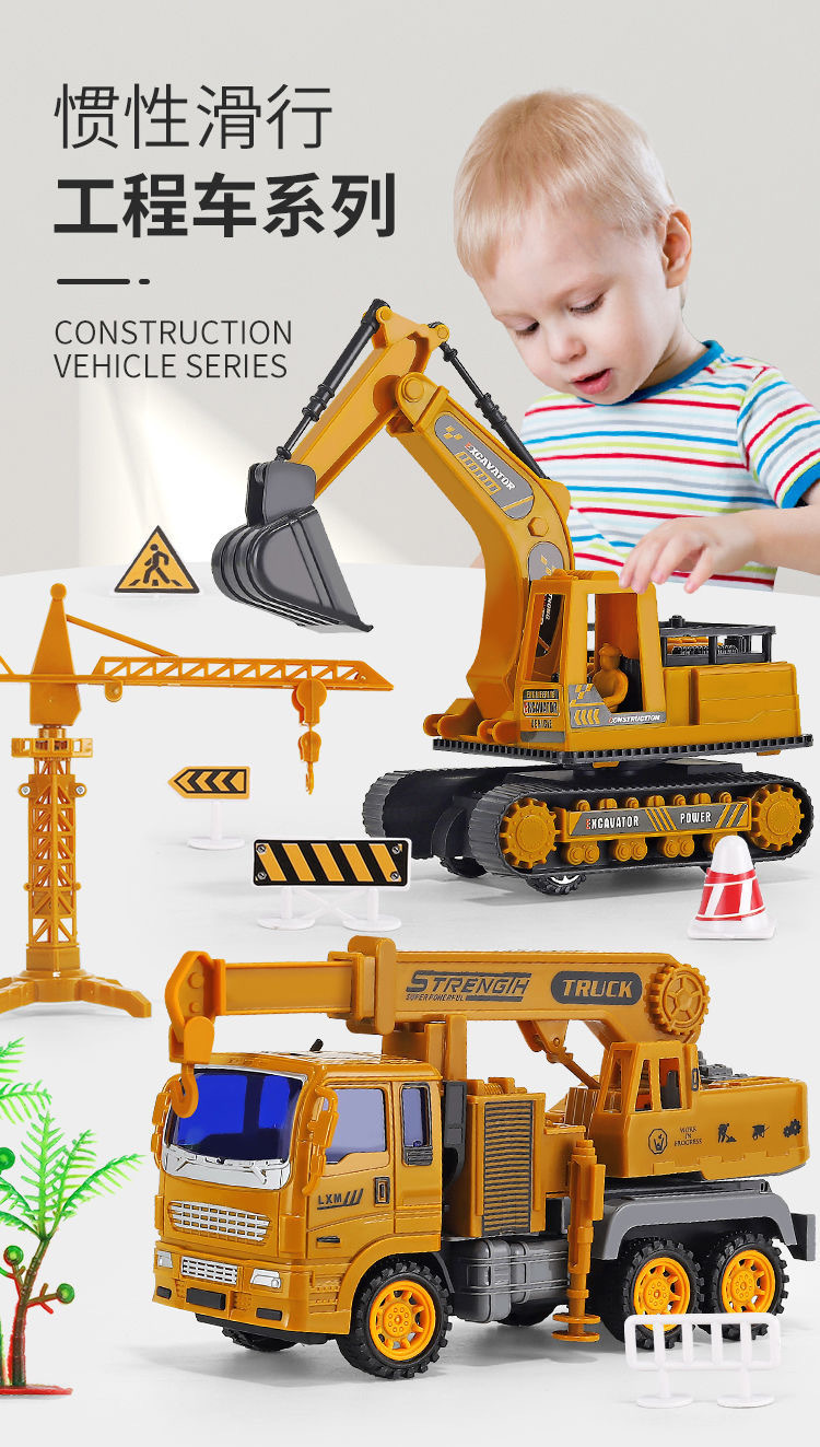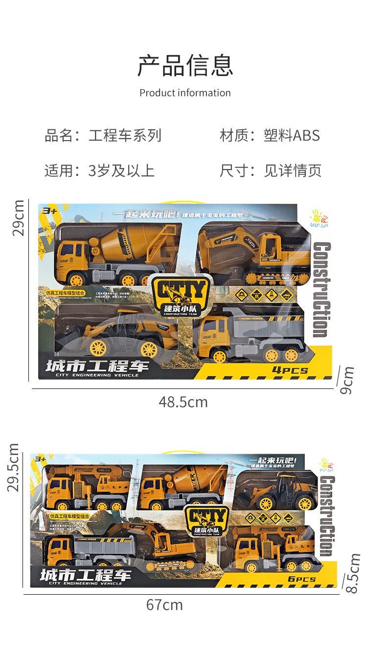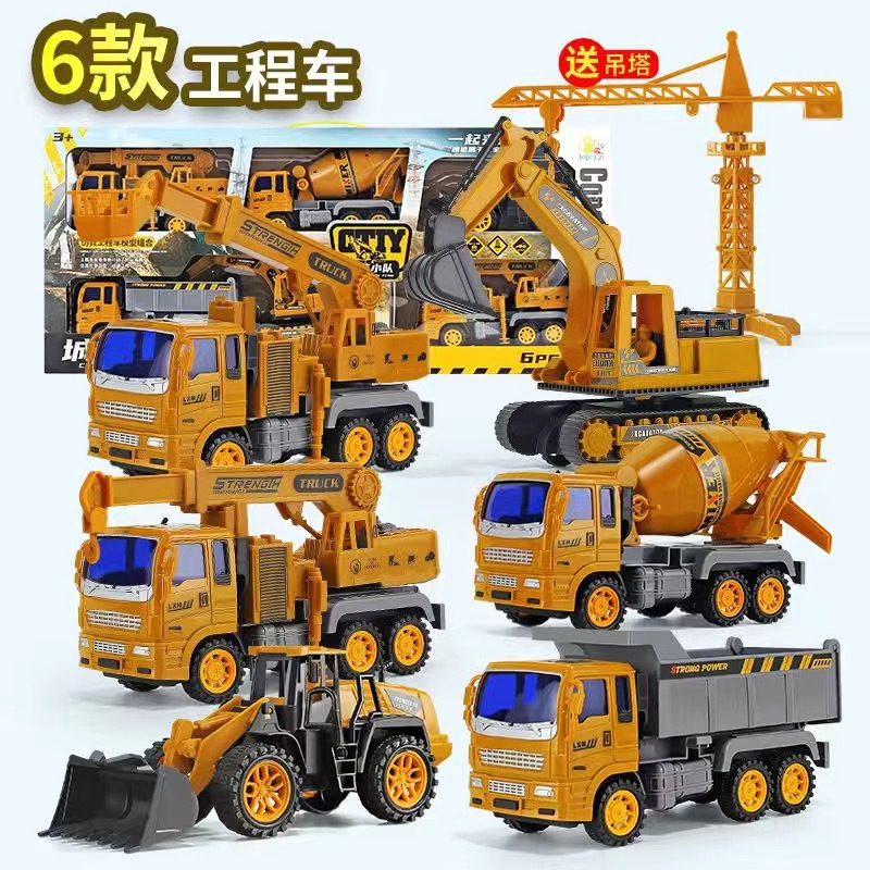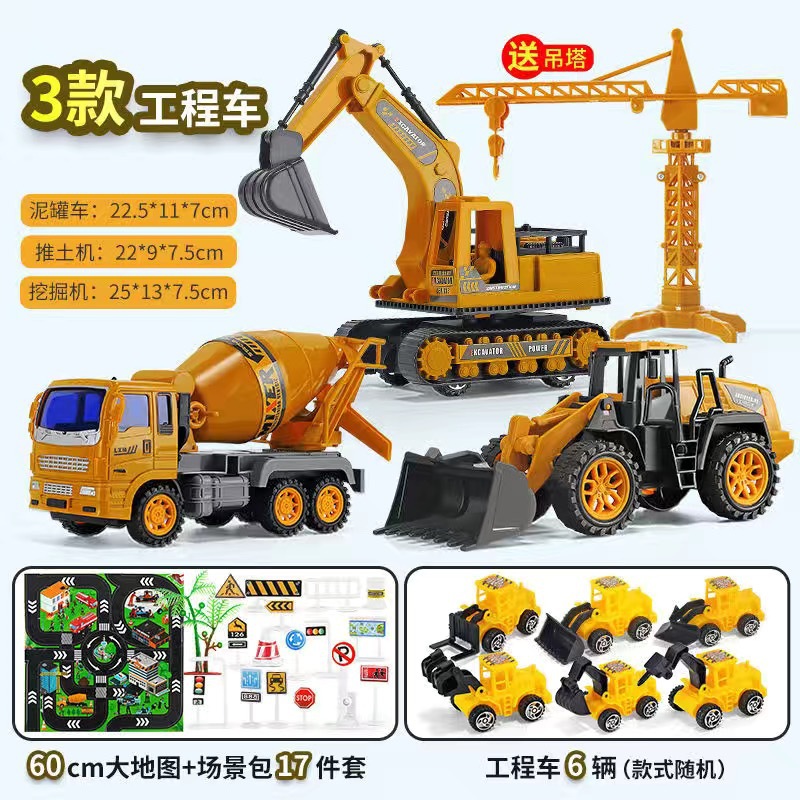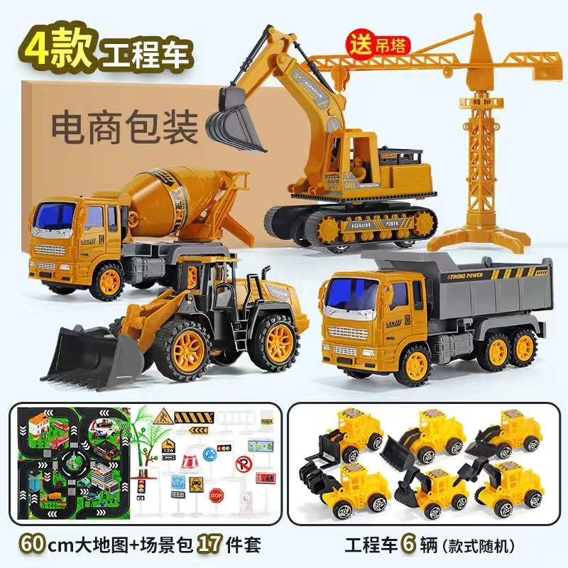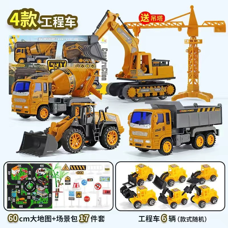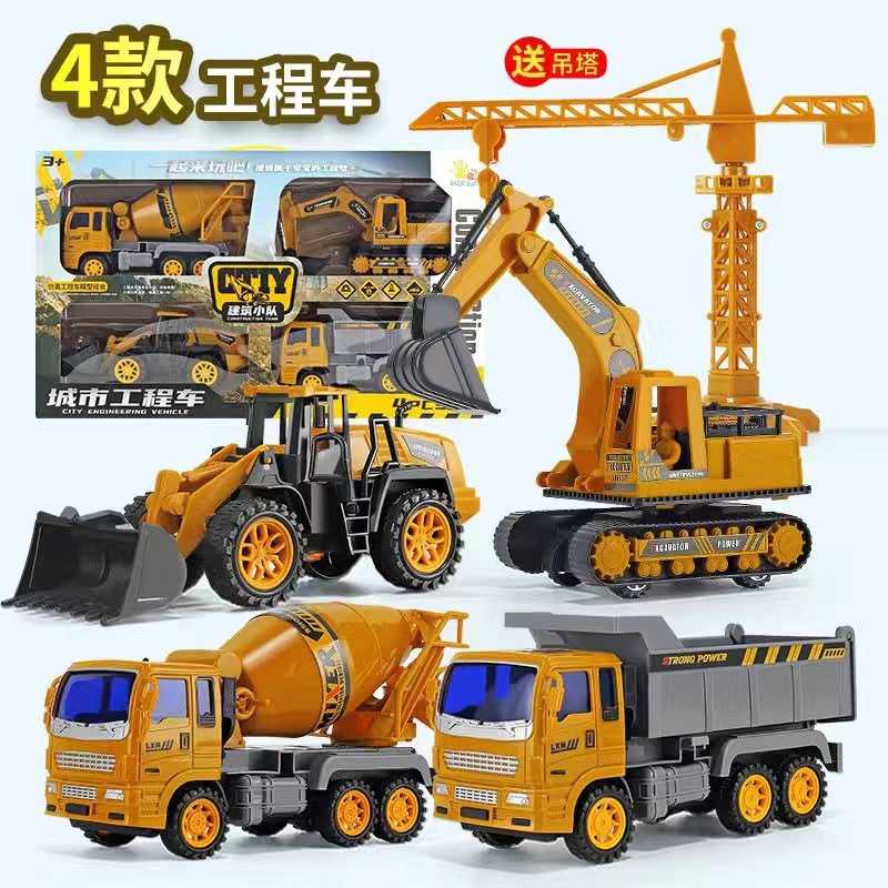 관성 공학 차량 큰 선물 상자 세트 어린이 장난감 크레인 굴삭기 지구 굴착 불도저 소년 자동차 모델스토어 가기