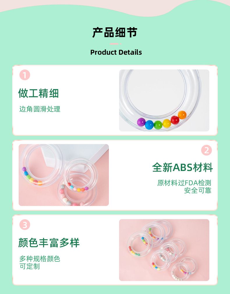 아기 투명 딸랑이 반지 아기 계몽 조기 교육 청력 운동 벨 링 감정을 진정시키는 어린이를위한 반지