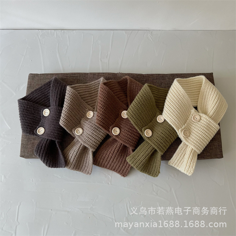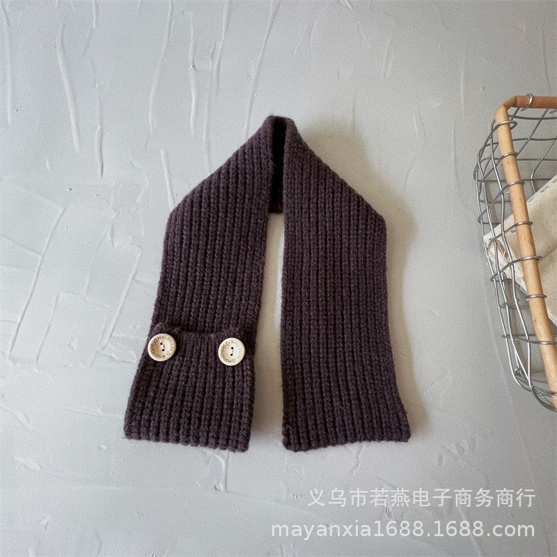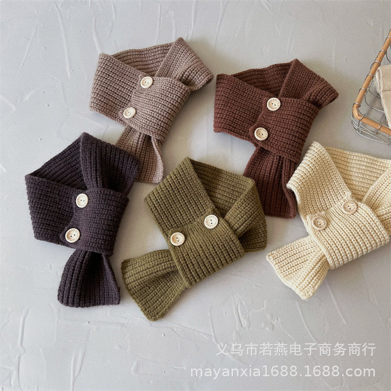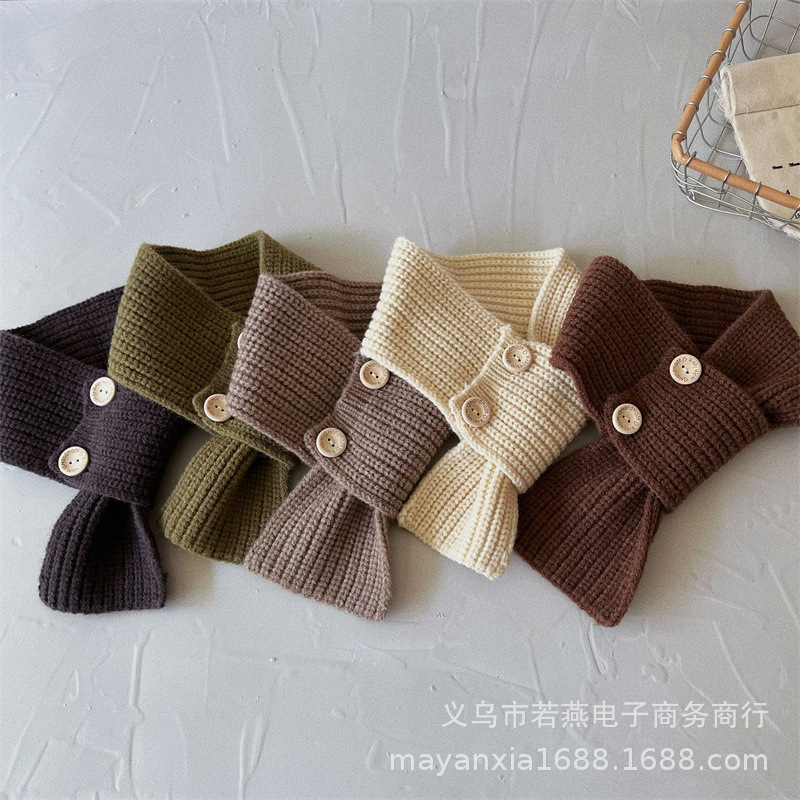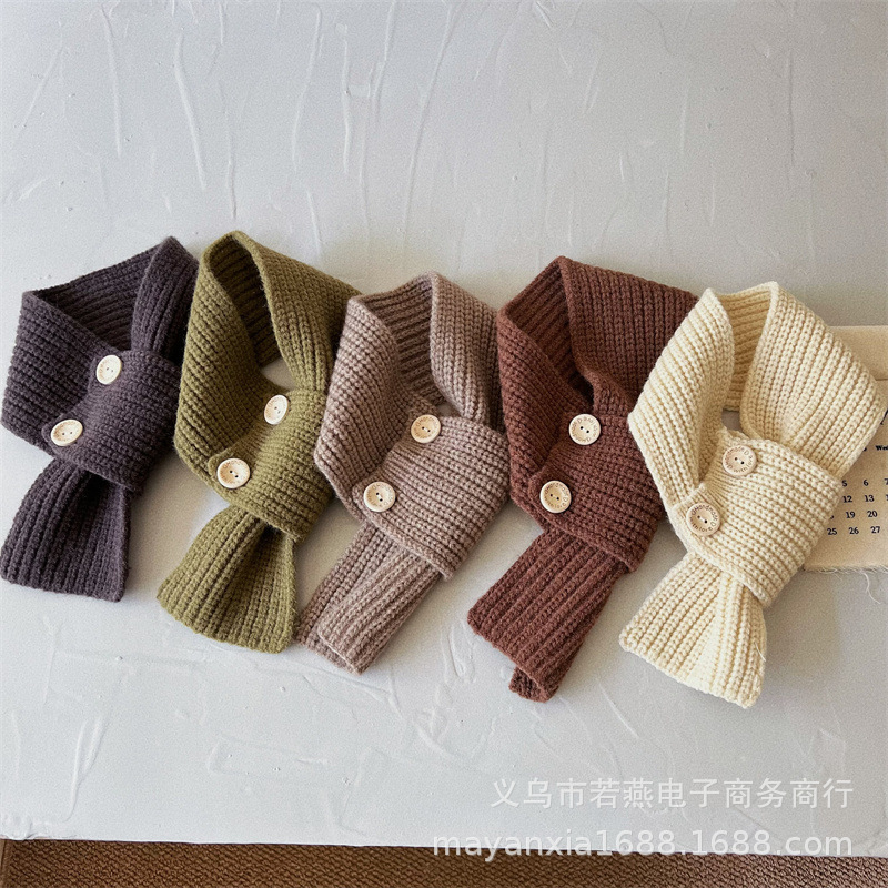 아동복 모든 일치 오목한 모양 겨울 따뜻한 maillard 스타일 어린이 스카프 복고풍 나무 버클 아기의 울 스카프