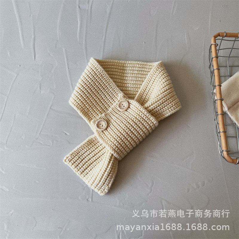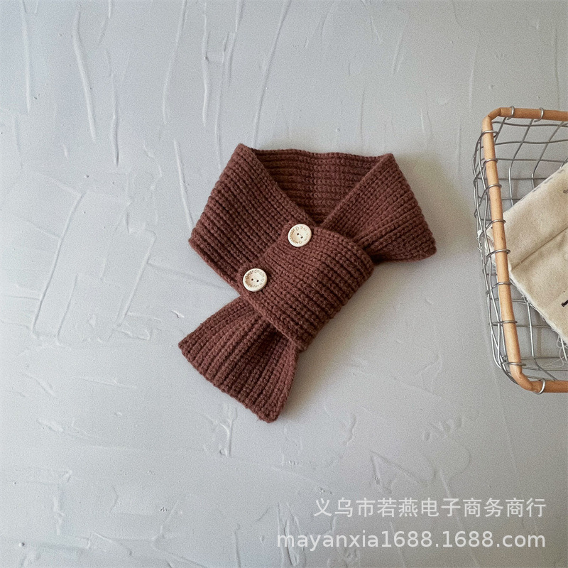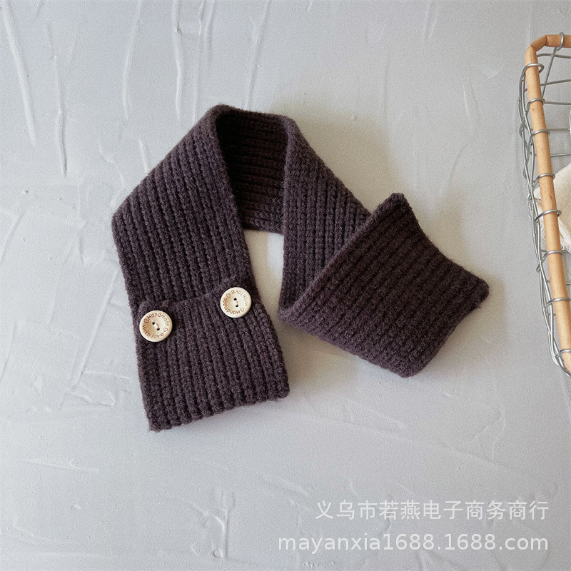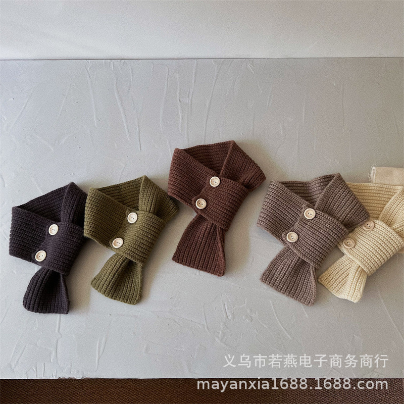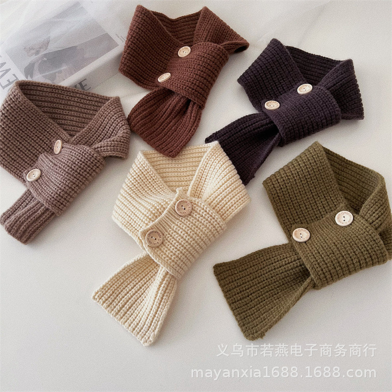 아동복 모든 일치 오목한 모양 겨울 따뜻한 maillard 스타일 어린이 스카프 복고풍 나무 버클 아기의 울 스카프