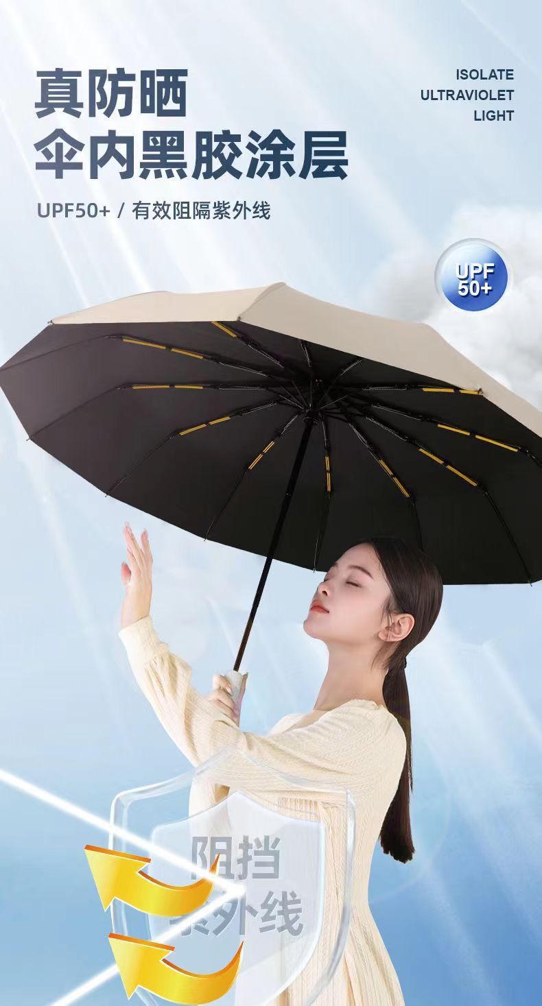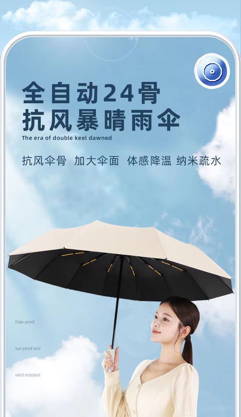 24 뼈 자동 강화 비닐 우산 태양 보호 접는 우산 파라솔 태양 우산 맑은 우산 제조 업체 도매 사용자 정의스토어 가기