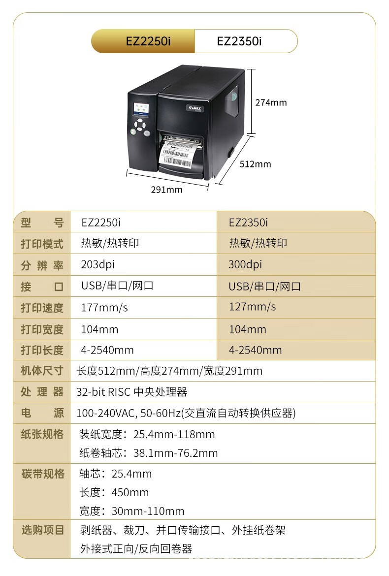 고덱스 EZ2250I/EZ2350I 산업용 바코드 프린터, 의류 태그용 스티커, 공장 생산스토어 가기