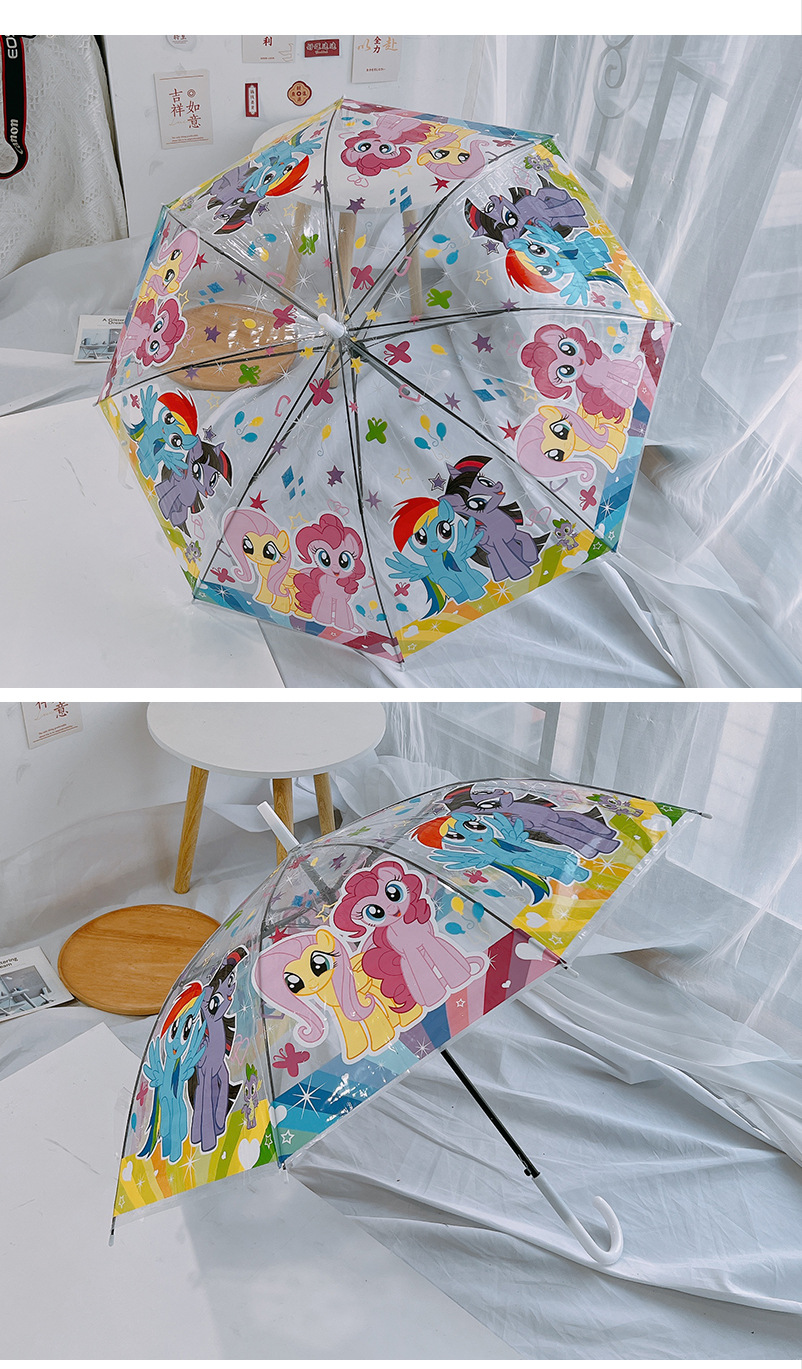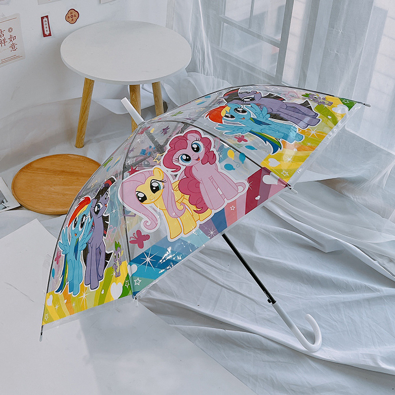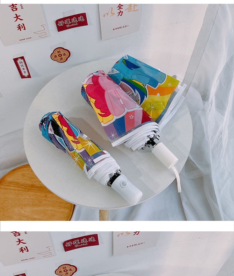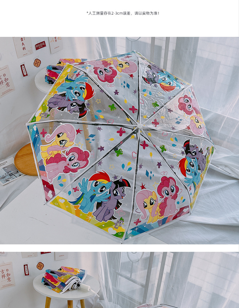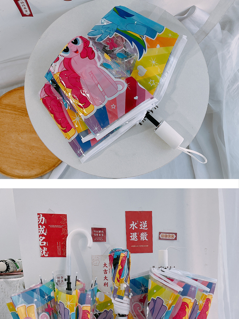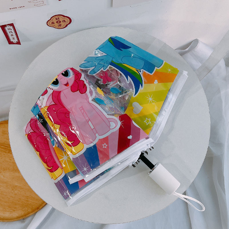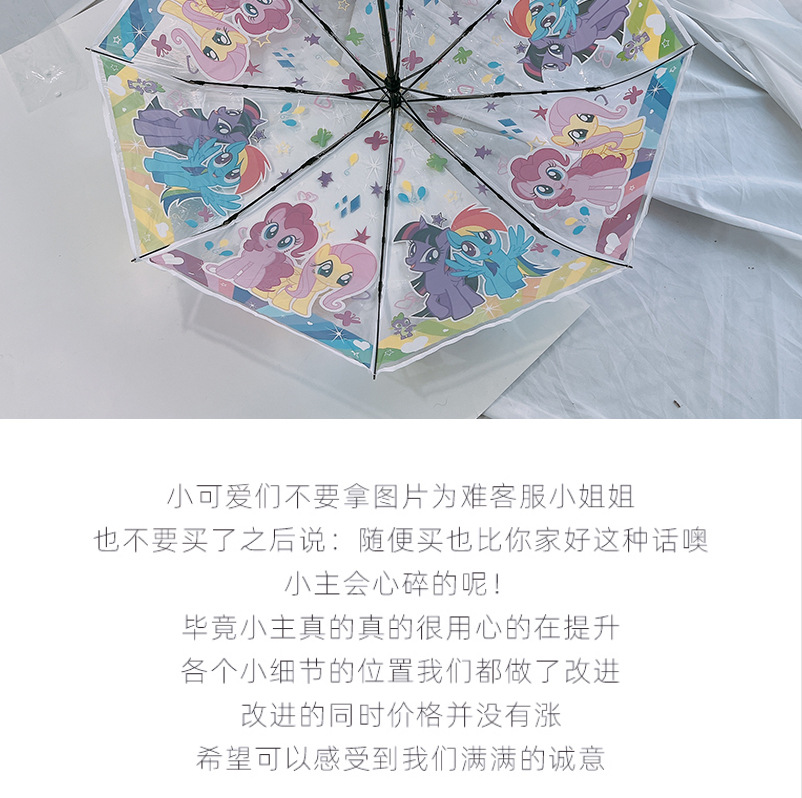 조랑말 폴리 투명 우산 3 중 우산 완전 자동 인터넷 유명 스트레이트 핸들 우산 귀여운 접는 어린이 성인 두꺼운 여성