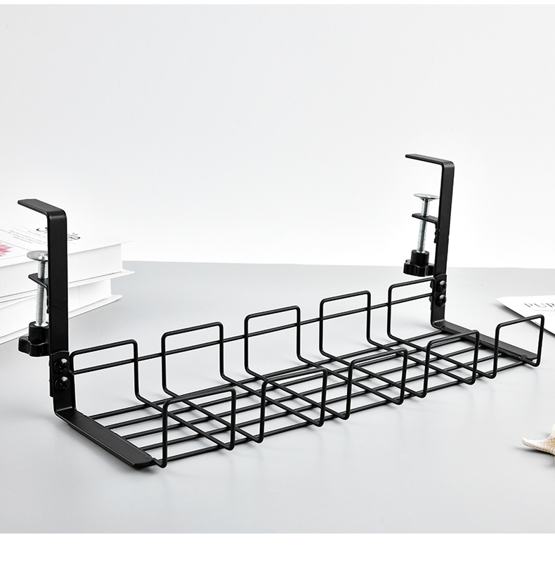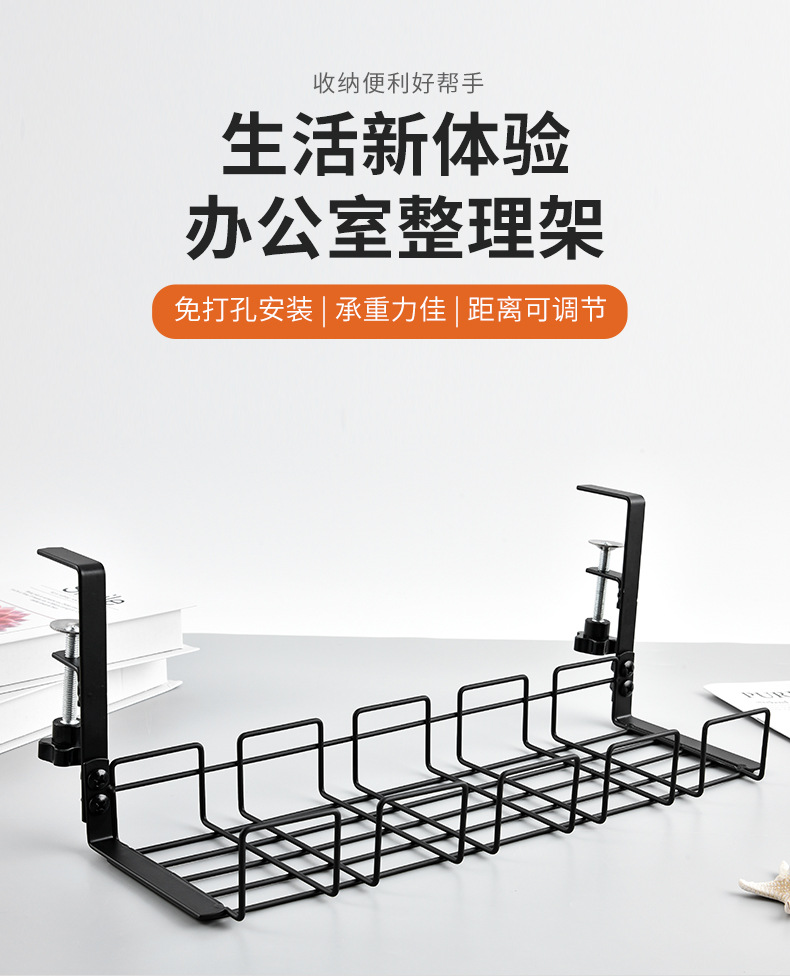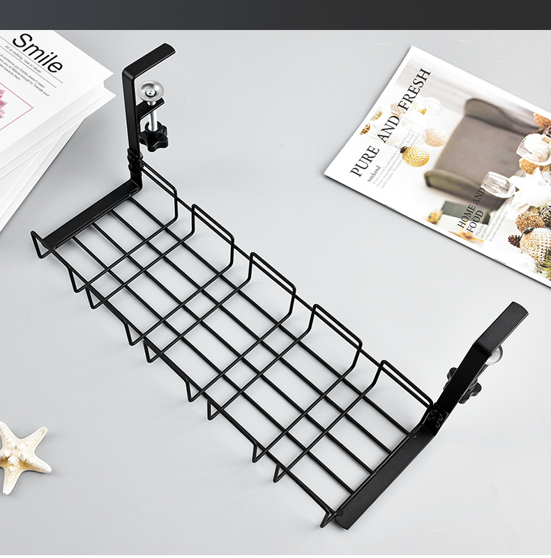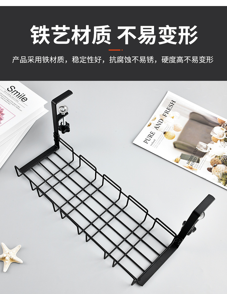 탁상 밑에 설치하는 무타공 수납 선반, 전선 및 콘센트 정리함, 사무실 책상용 낮은 수납 선반