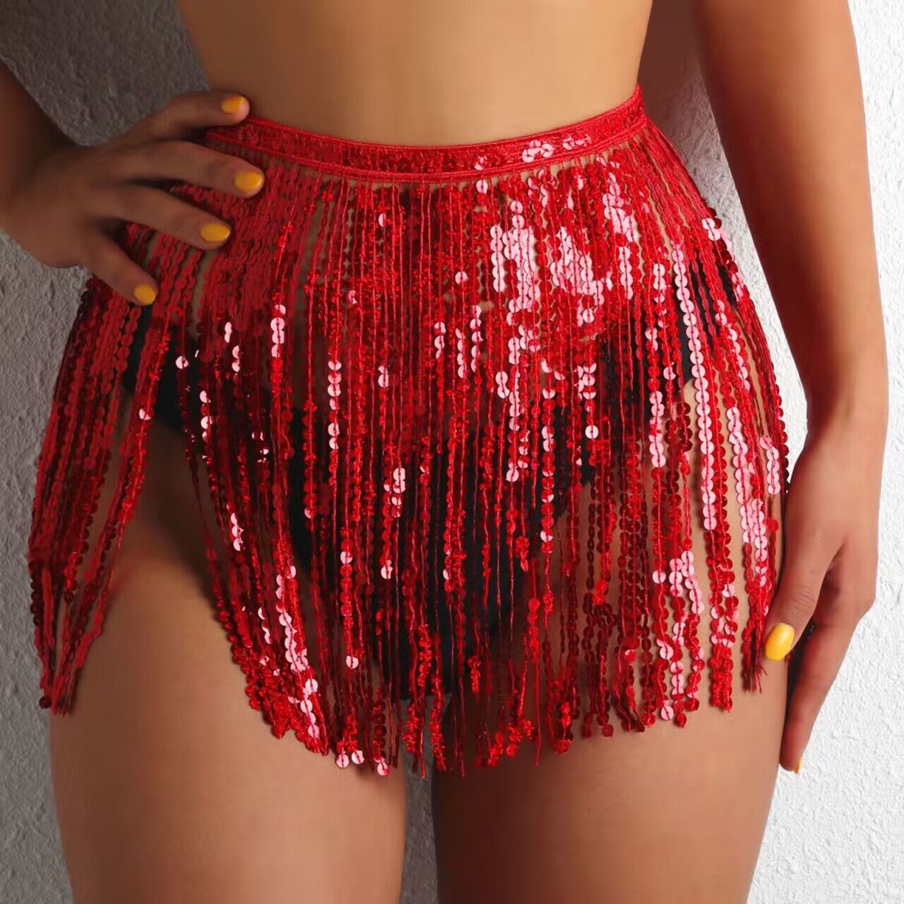 아마존 스팽글 술 스커트 분할 비키니 수영복 스커트 라틴 스커트 ds 파티 나이트 클럽 성능 세트스토어 가기