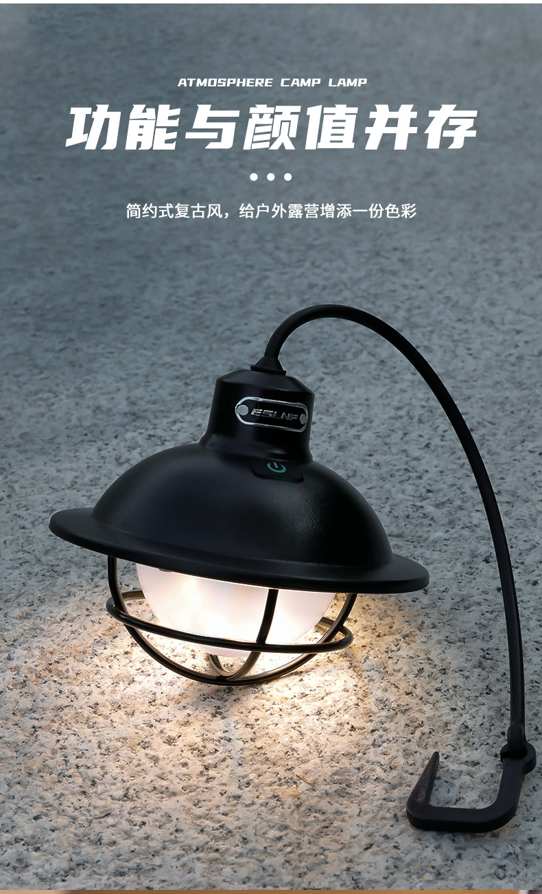 ESLNF 캠핑 라이트 레트로 텐트 분위기 조명 방수 캠프 캠핑 라이트 충전 교수형 조명 야외 조명 액세서리