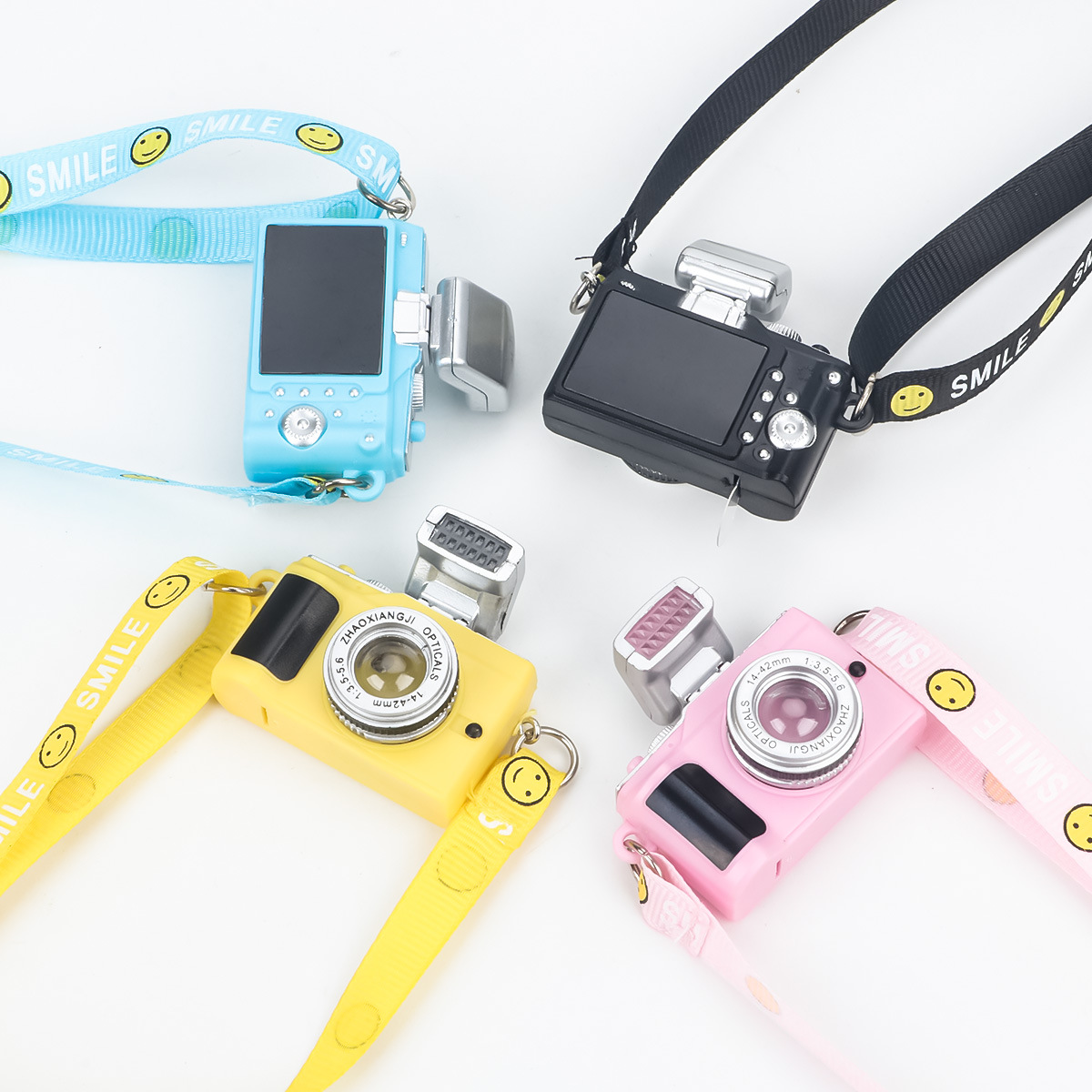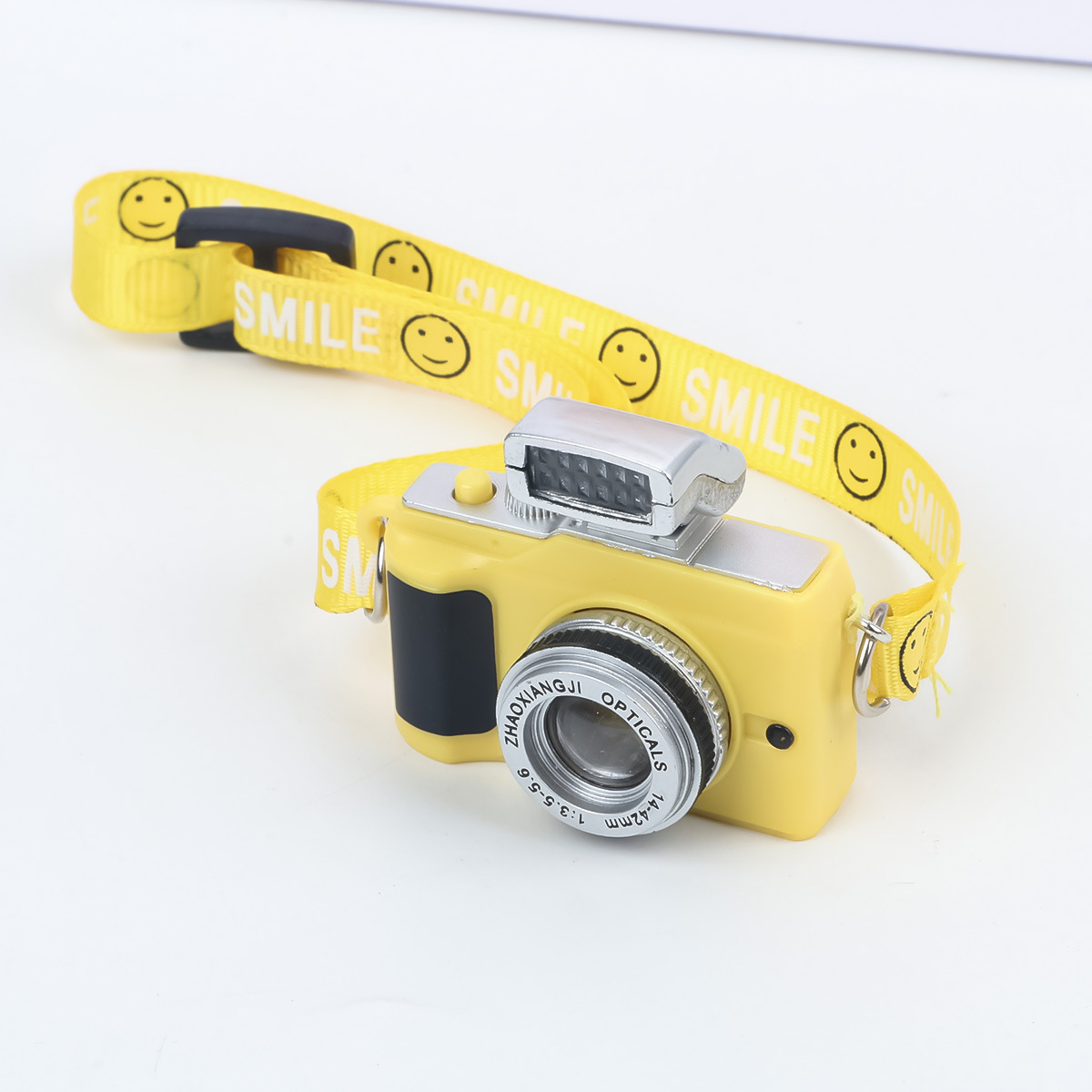 코튼 인형 웃는 얼굴 스트랩 리본 빛나는 사운드 카메라 펜던트 핸드독 시뮬레이션 미니 카메라 배낭스토어 가기