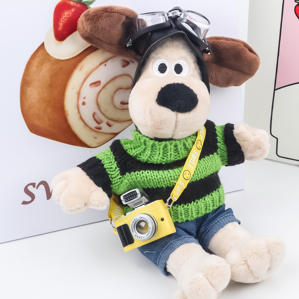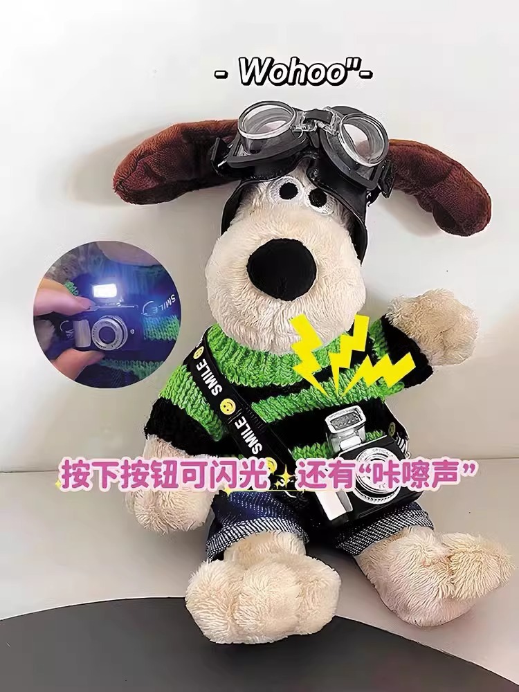 코튼 인형 웃는 얼굴 스트랩 리본 빛나는 사운드 카메라 펜던트 핸드독 시뮬레이션 미니 카메라 배낭