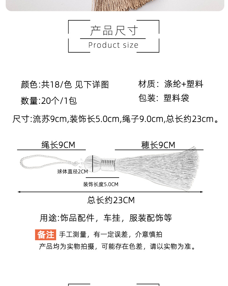 도매 9cm 술 매달려 귀 커튼 액세서리 책갈피 sachery 선물 상자 공예 장식 술 귀