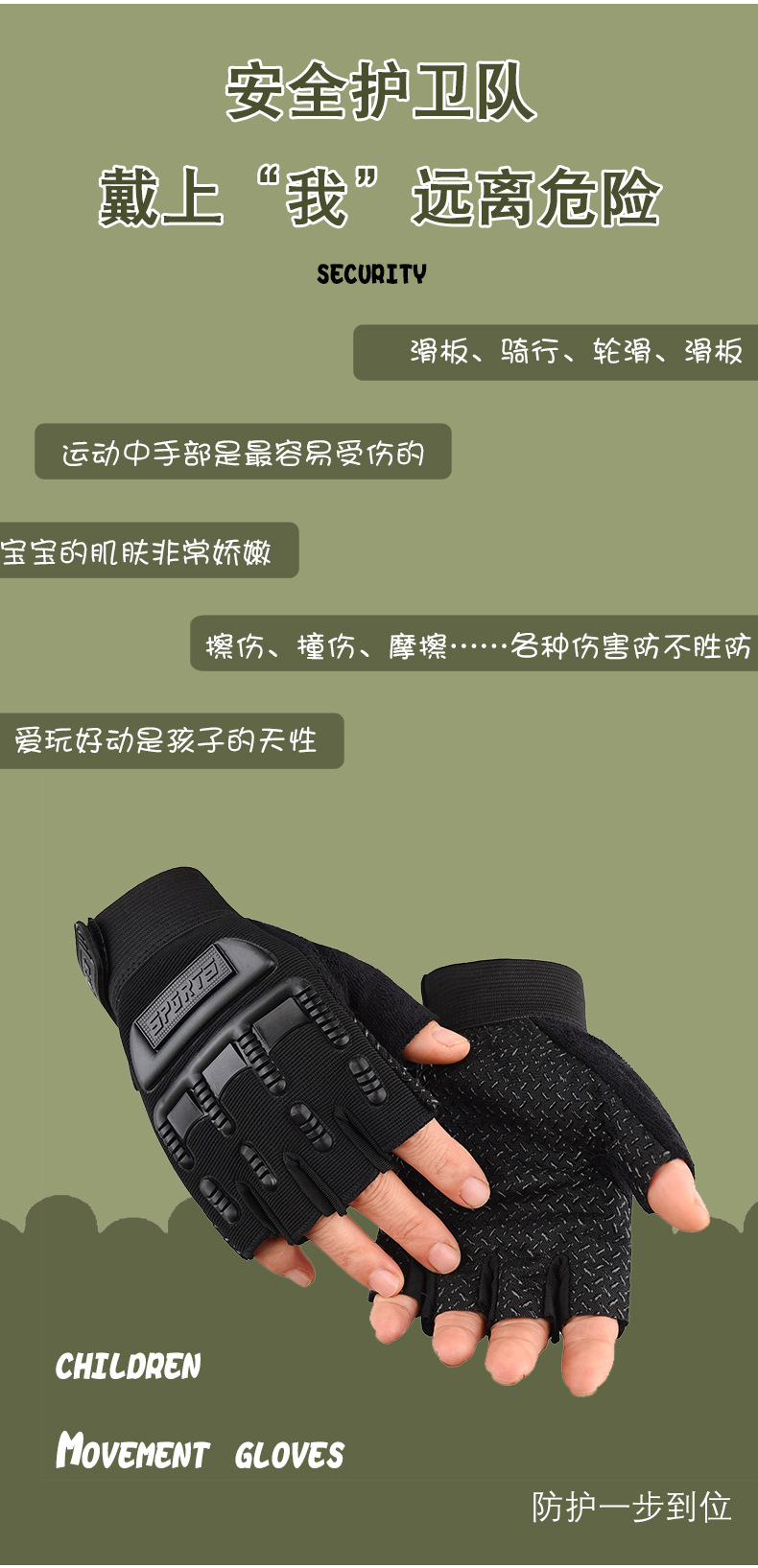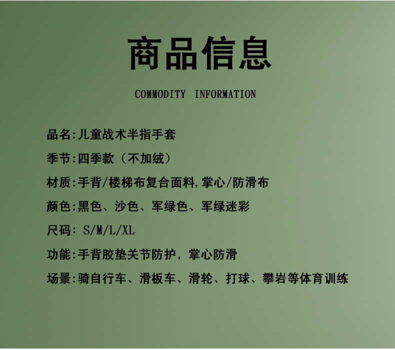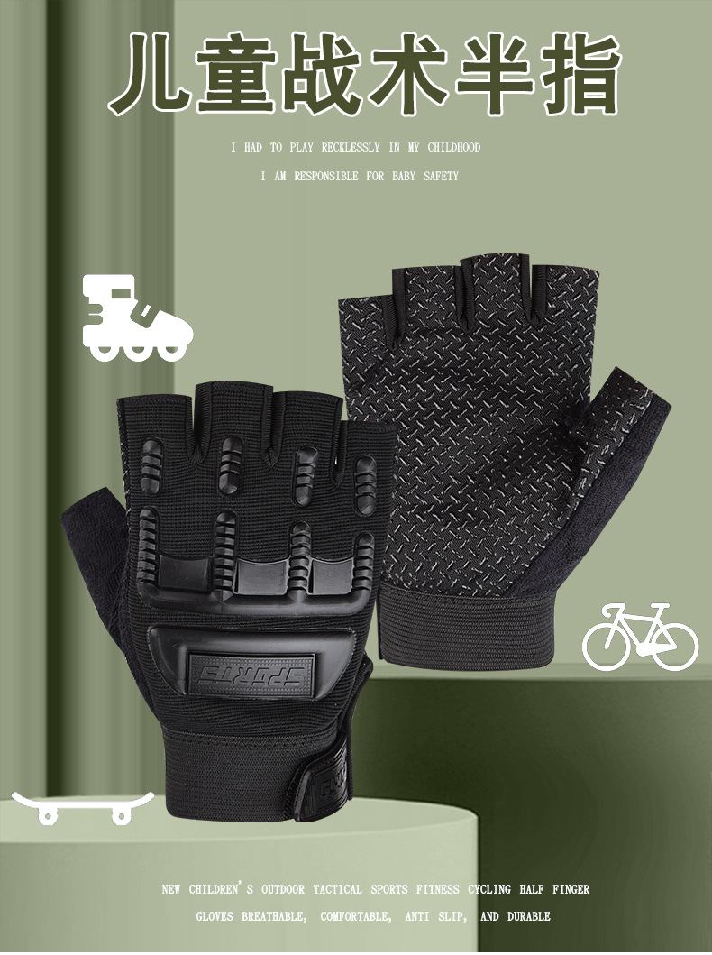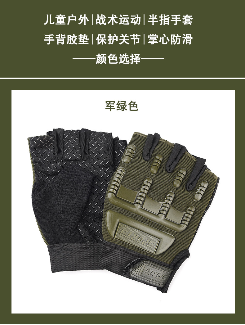 야외 특수 부대 어린이 장갑 남성용 반 손가락 스포츠 피트니스 미끄럼 방지 전술 장갑 여자 군사 팬 초등학생 훈련