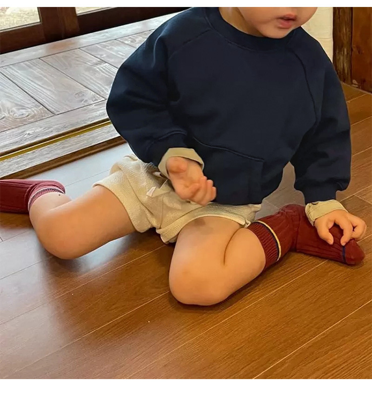 【재고정리】아동용 라글란 라운드넥 스웨트셔츠 순면 긴팔 배색 골지 한국 스타일 만능 아동복 상의