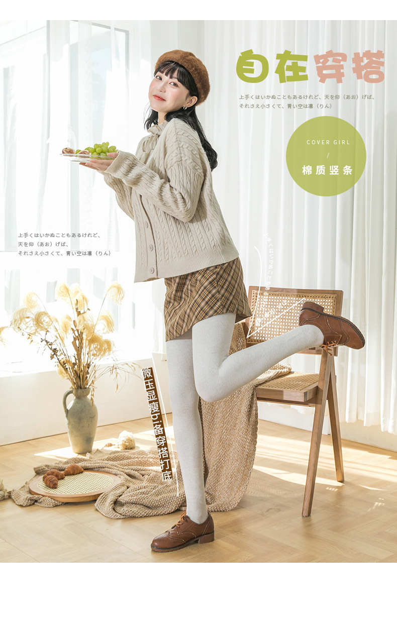가을과 겨울 일본 빗질 코튼 레깅스 여성용 베이비 벨벳 세로 스트라이프 마이크로 압력 배꼽 리프팅 엉덩이 리프팅 오트밀 화이트 팬츠스토어 가기