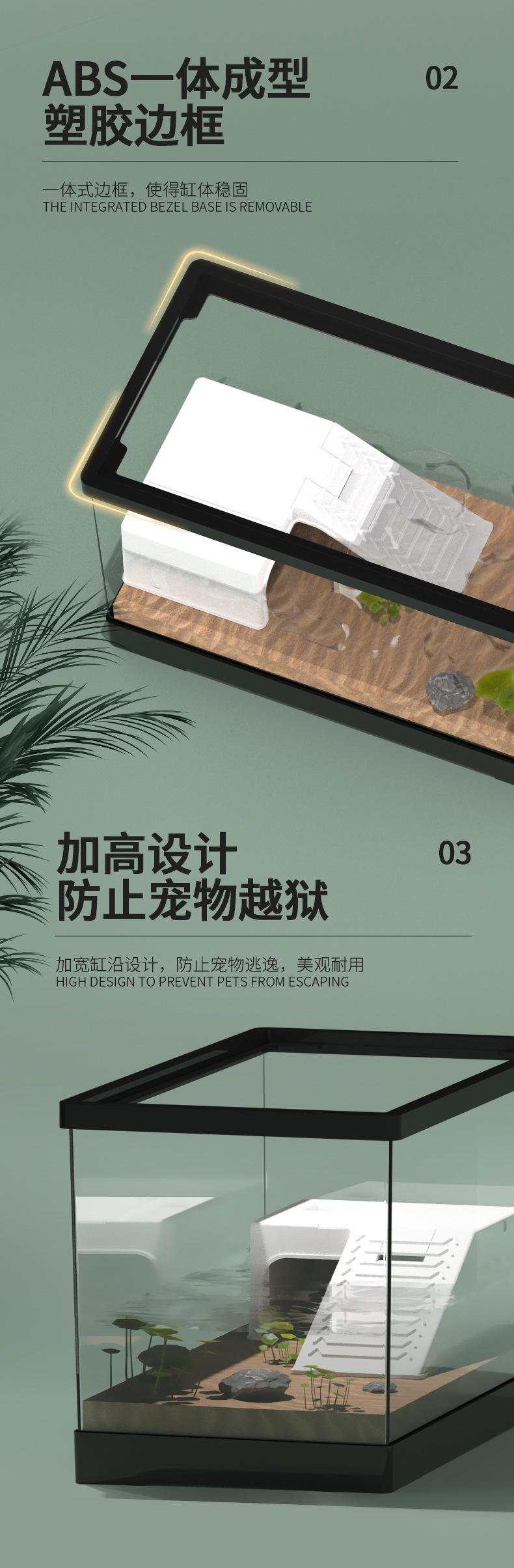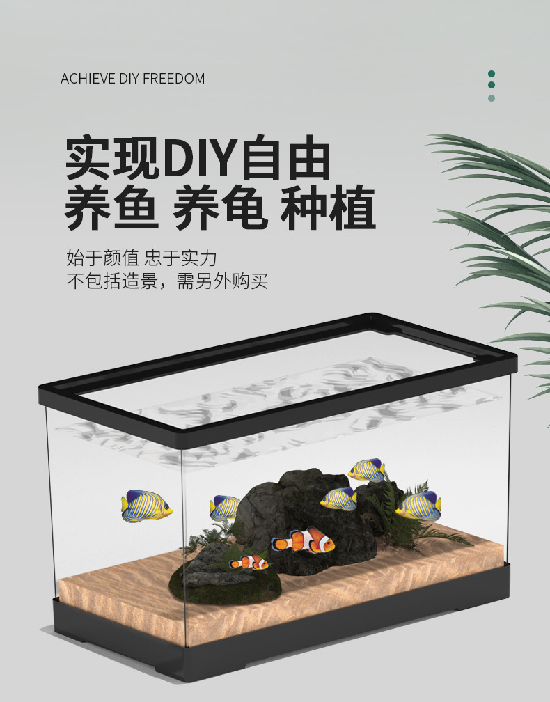 투명 이중 목적 어항 가정용 PET 모조 유리 수유 조경 거실 생태 직사각형 거북이 탱크 수족관
