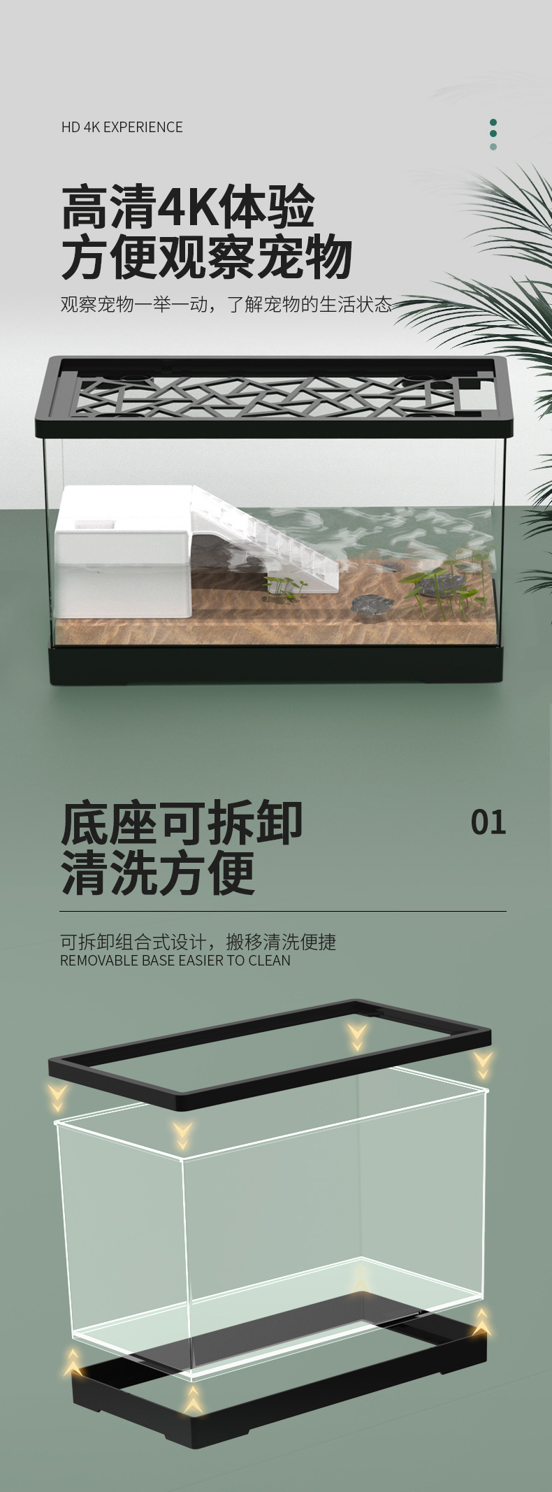 투명 이중 목적 어항 가정용 PET 모조 유리 수유 조경 거실 생태 직사각형 거북이 탱크 수족관스토어 가기