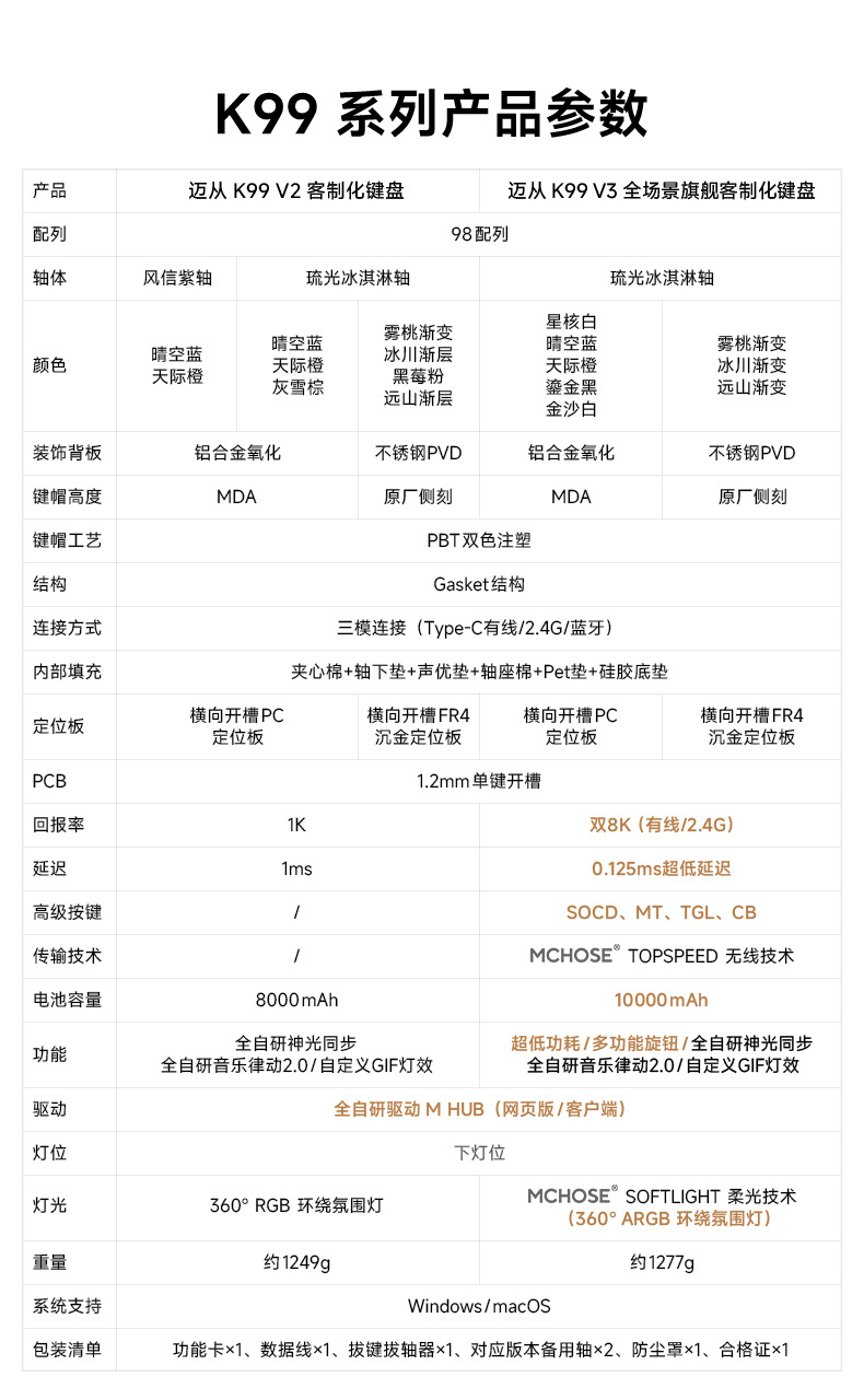 MCHOSE K99V3 맞춤형 기계식 키보드 무선 블루투스 3모드 게이밍 및 사무용 기계식 키보드