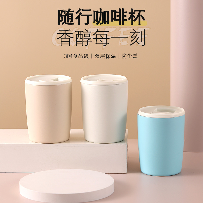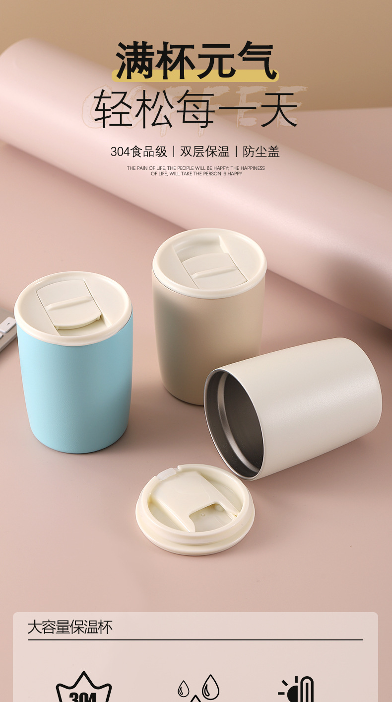 맞춤형 스테인레스 스틸 더블 레이어 304 국경 간 패션 간단한 자동차 커피 보온병 컵 휴대용 패션 컵