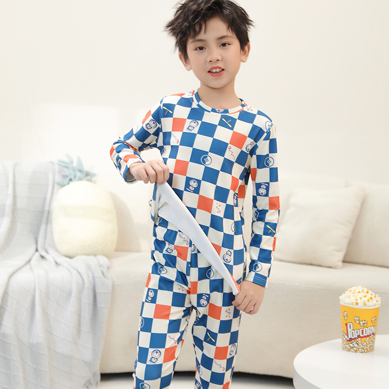 어린이 기본 가을 옷과 바지 소년 중간 및 큰 어린이 열 속옷 세트 소년 십대 잠옷 두꺼운 기모