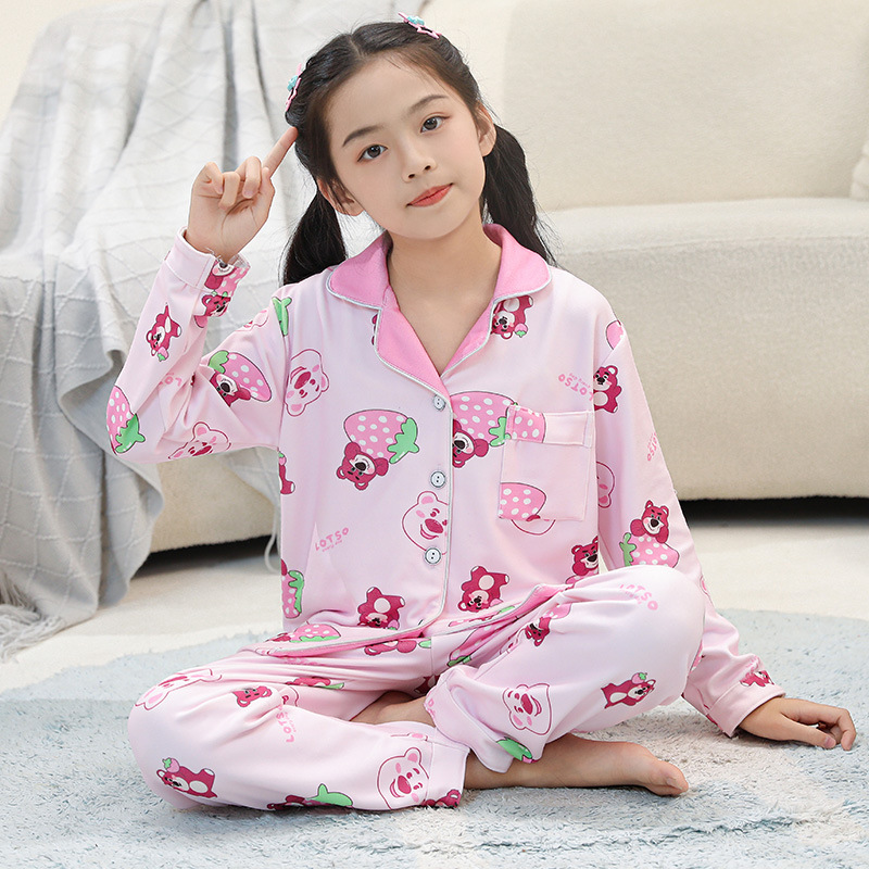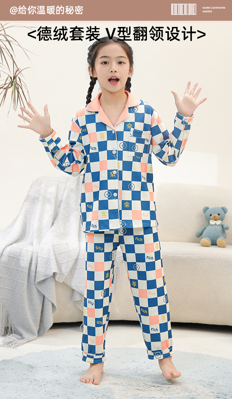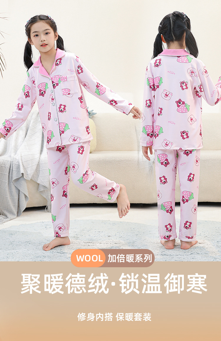 어린이 벨벳 가을 옷과 긴 바지 세트 긴 소매 아기의 열 속옷 여아 백킹 셔츠 남아 '중간 및 큰 어린이 잠옷스토어 가기