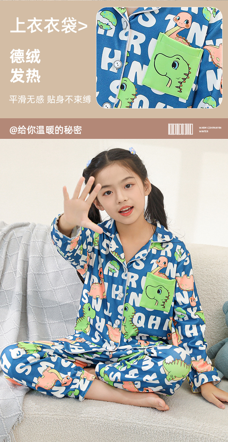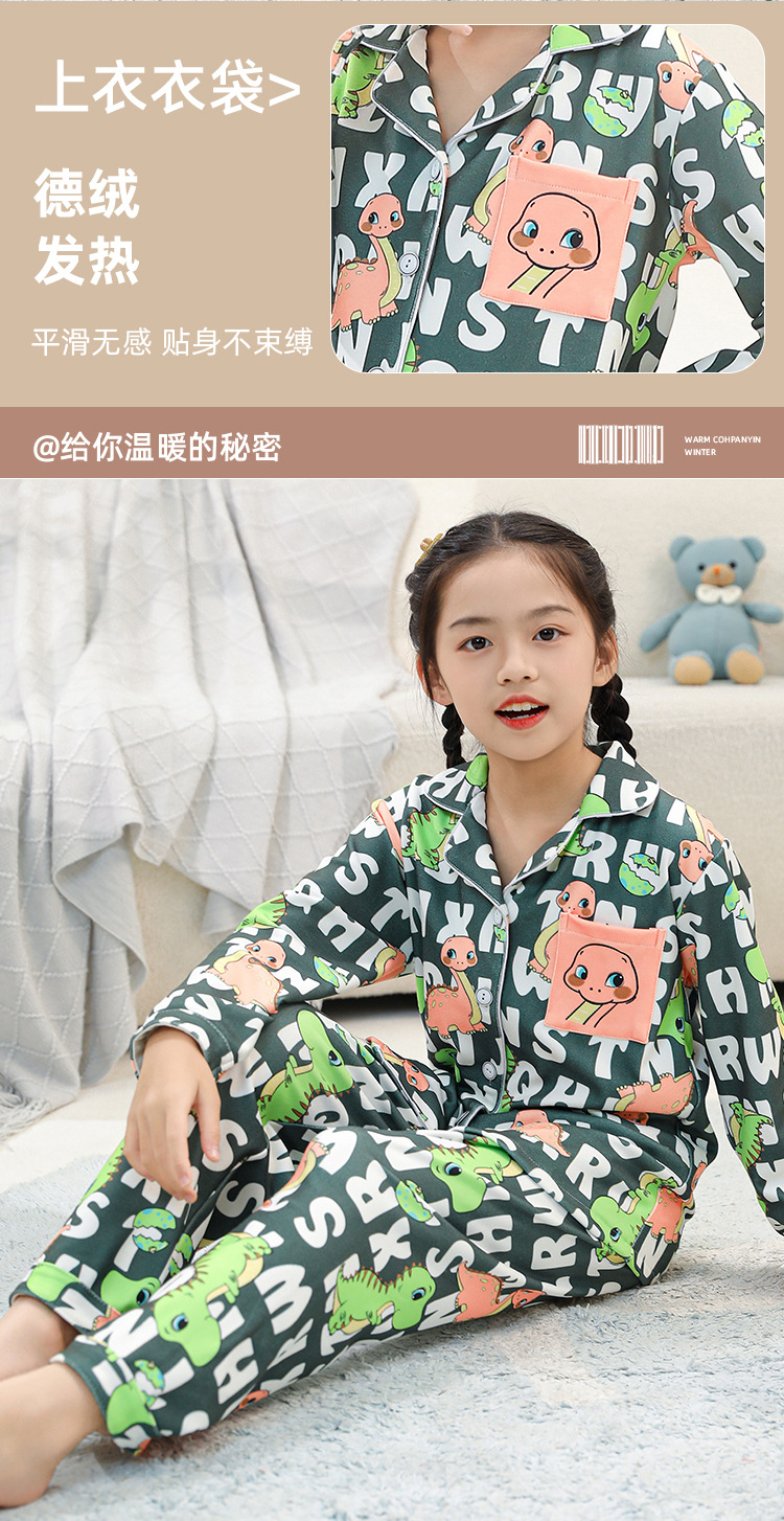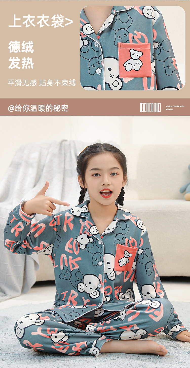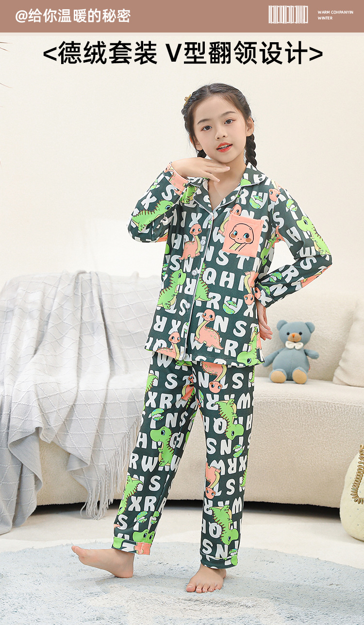 어린이 벨벳 가을 옷과 긴 바지 세트 긴 소매 아기의 열 속옷 여아 백킹 셔츠 남아 '중간 및 큰 어린이 잠옷