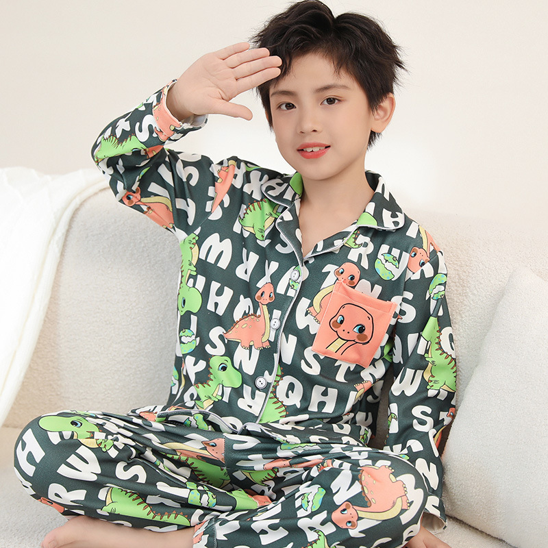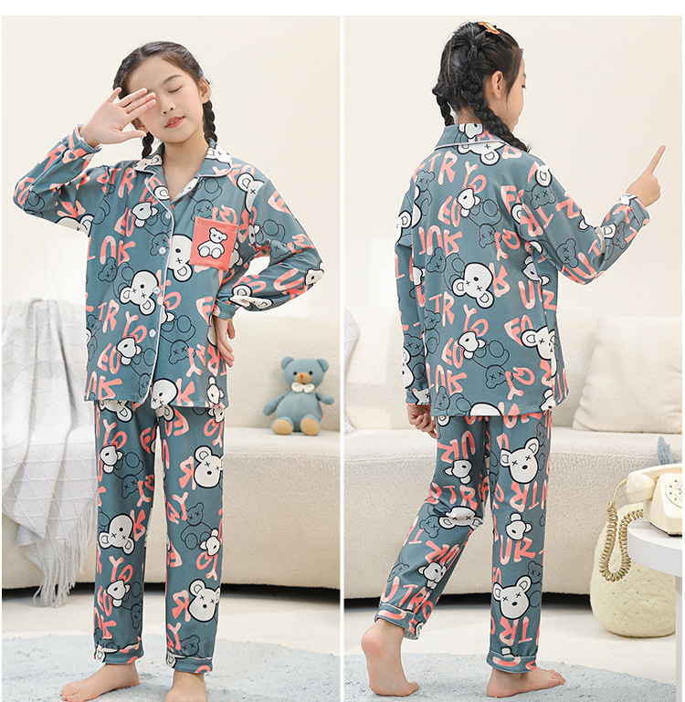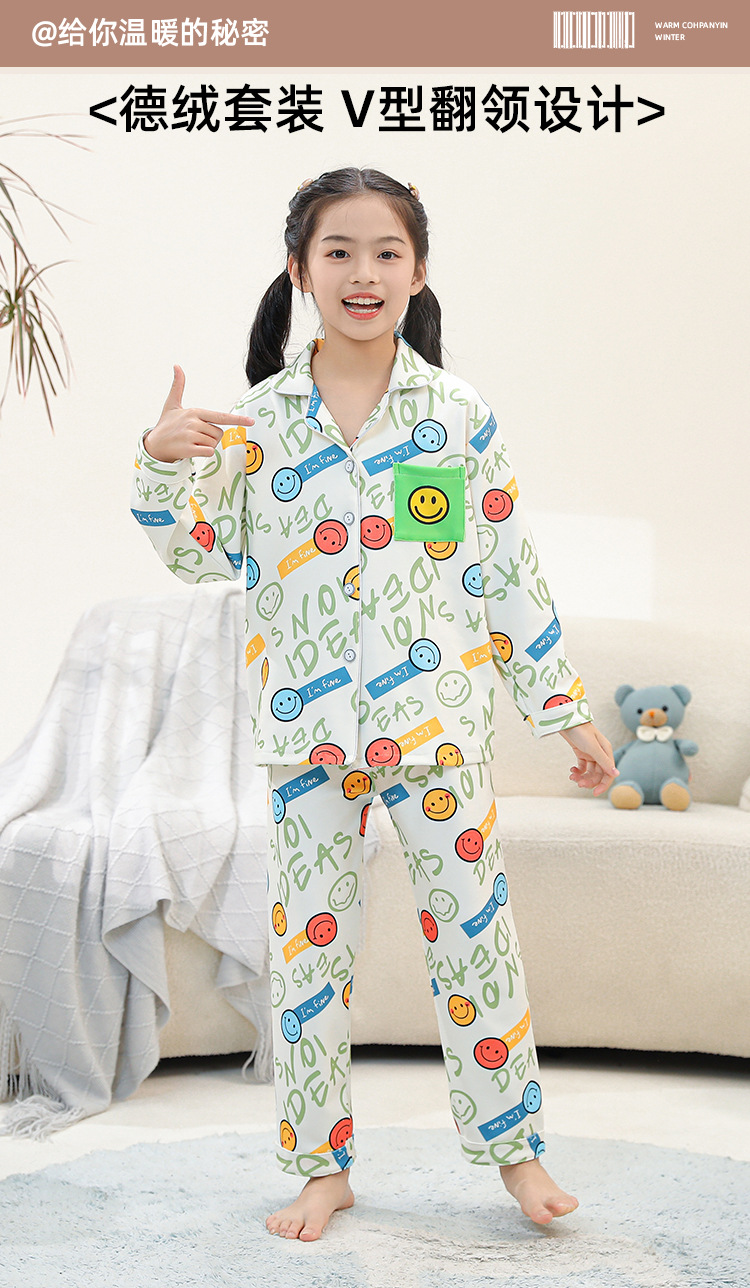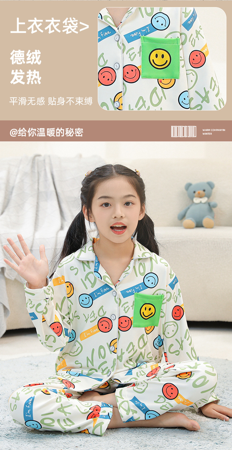어린이 벨벳 가을 옷과 긴 바지 세트 긴 소매 아기의 열 속옷 여아 백킹 셔츠 남아 '중간 및 큰 어린이 잠옷