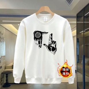简约纯色内搭加绒卫衣男冬款圆领白色上衣2024新款爆款春秋季长袖