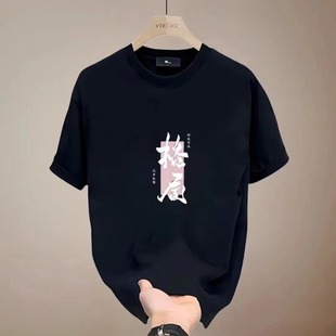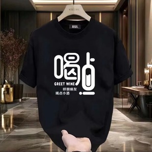 夏季文字酒神t恤酒仙喝酒印花圆领体恤2024男装短袖潮牌ins风宽松