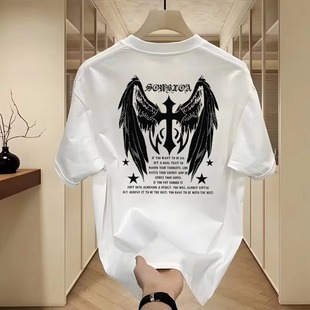 十字架双翼重磅230g纯棉短袖t恤男夏季美式高街潮牌痞帅宽松半袖