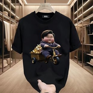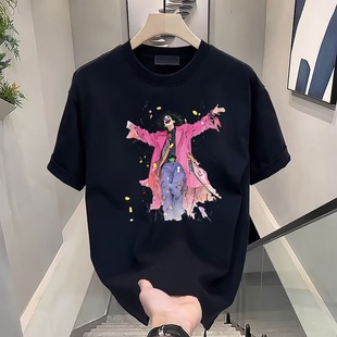 2024夏季新款个性创意卡通印花设计重磅纯棉短袖男士T恤半袖上衣