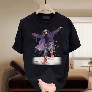 美式重磅卡通小丑宽松纯棉男士短袖夏季新款百搭休闲情侣T恤上衣