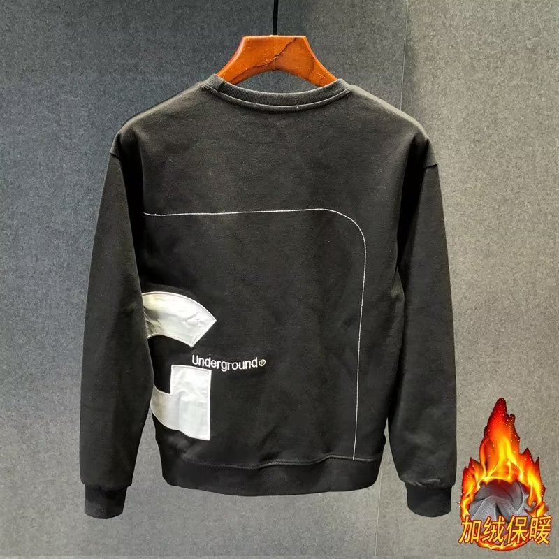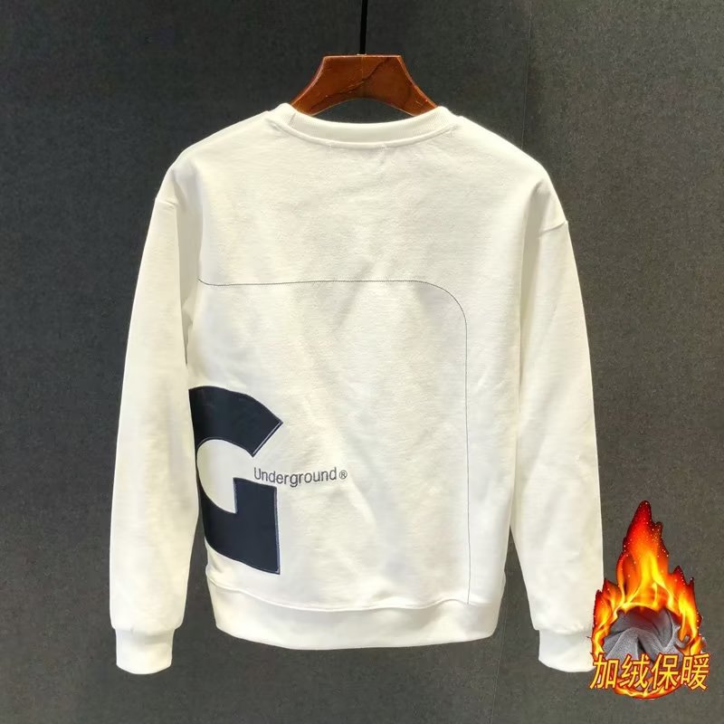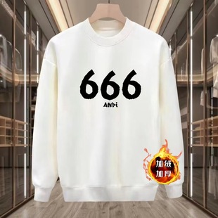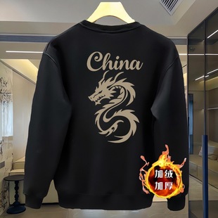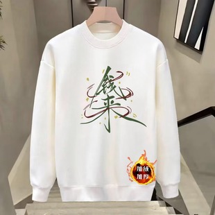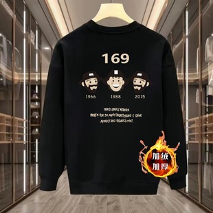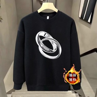 2024新款秋冬季网红加绒卫衣男潮流圆领印花套头体恤休闲长袖上衣