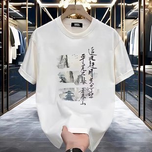 2024夏季潮牌帅气重磅纯棉圆领短袖t恤男士轻奢新款潮流半袖男装