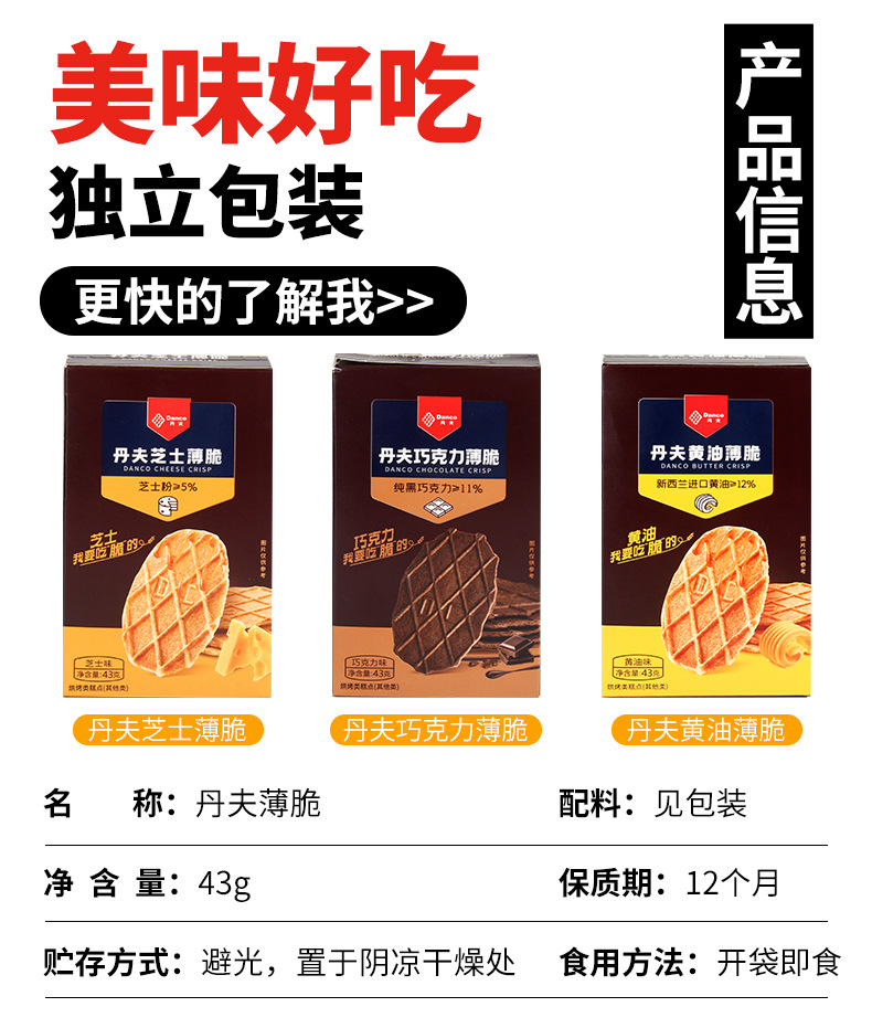 댄포 초콜릿 크리스프 43g 박스형 치즈 케이크 버터 크리스프 와플 스낵 도매
