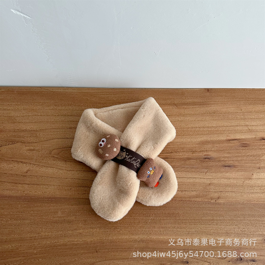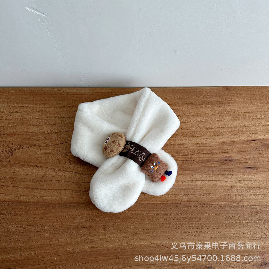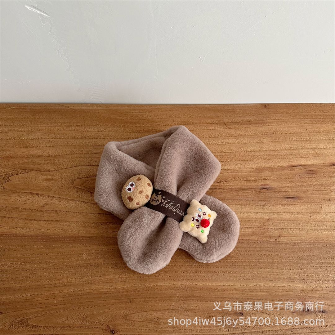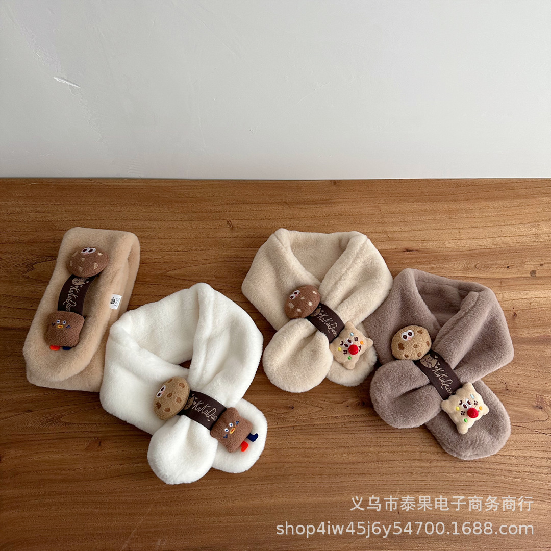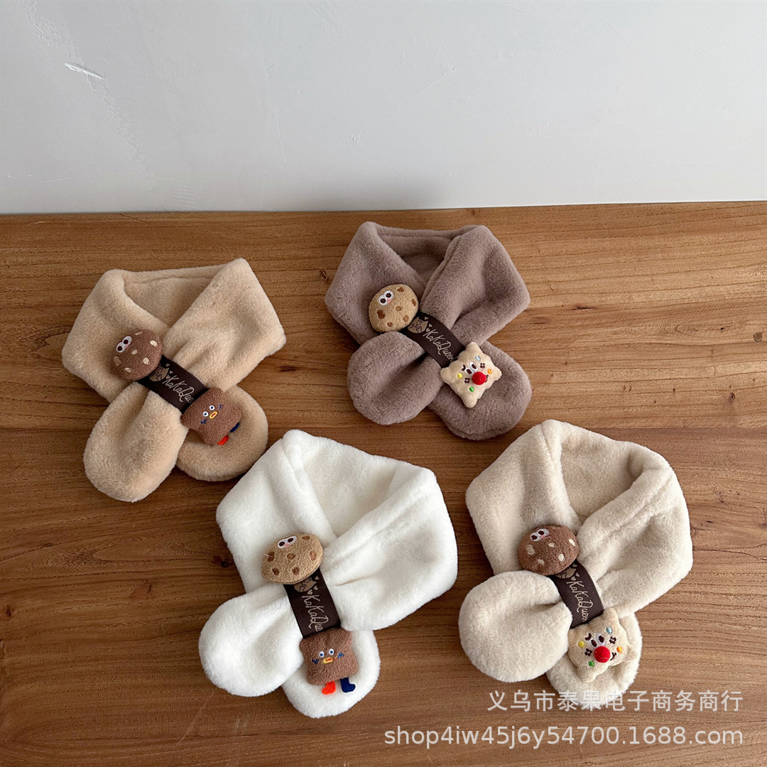 소년과 소녀를위한 겨울 어린이의 새로운 단색 만화 비스킷 표현 봉제 크로스 넥 쉴드 따뜻한 작은 스카프