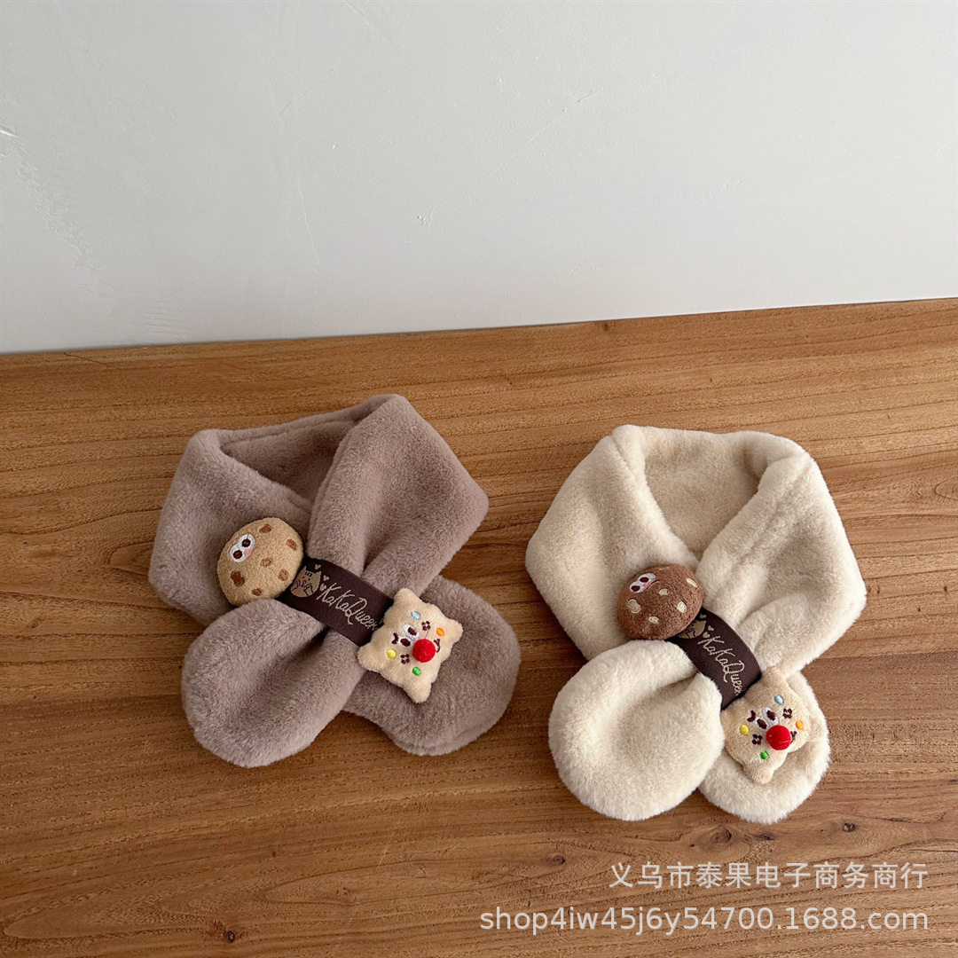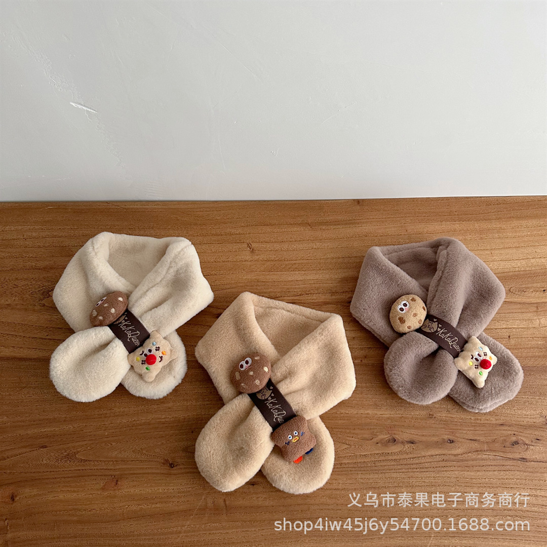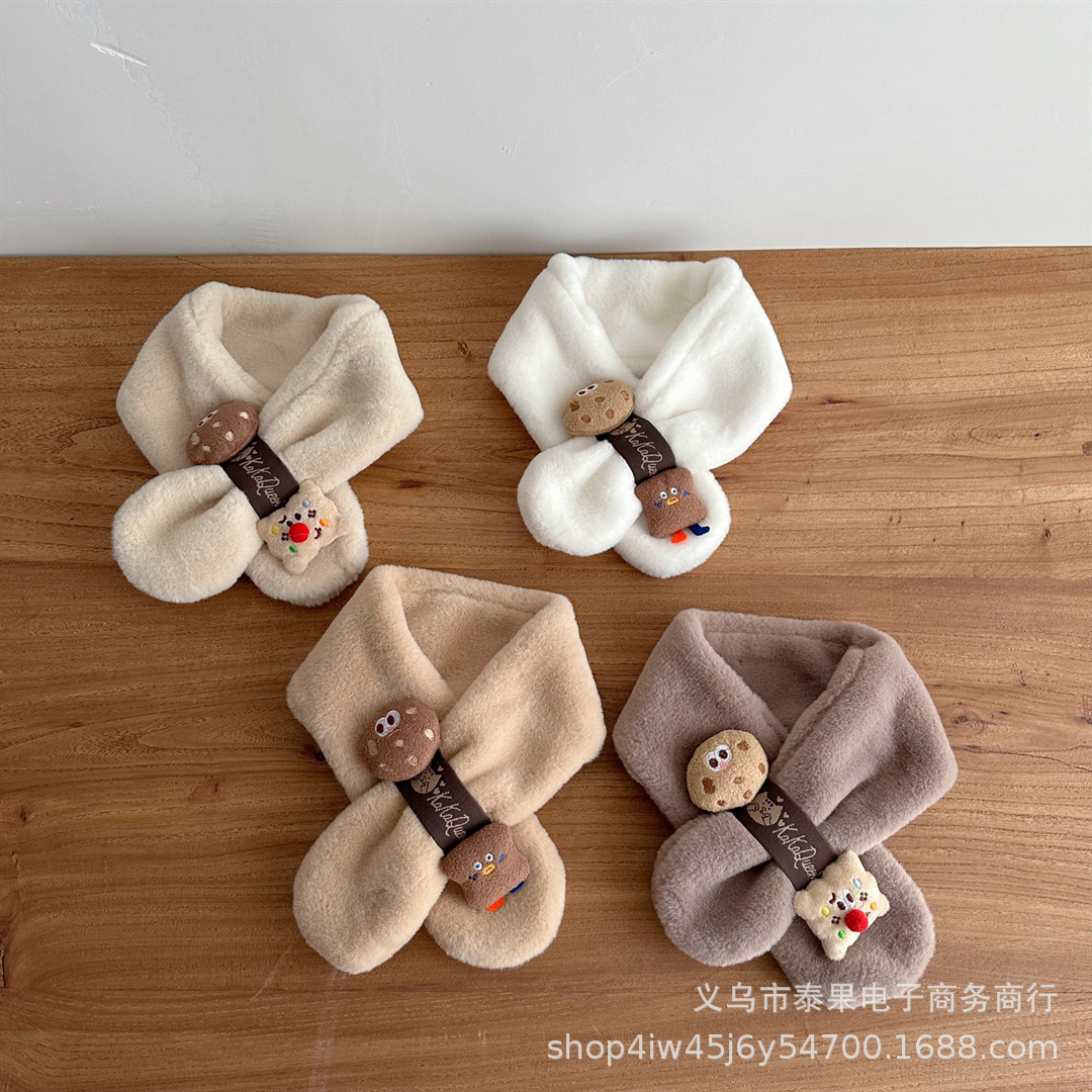 소년과 소녀를위한 겨울 어린이의 새로운 단색 만화 비스킷 표현 봉제 크로스 넥 쉴드 따뜻한 작은 스카프스토어 가기