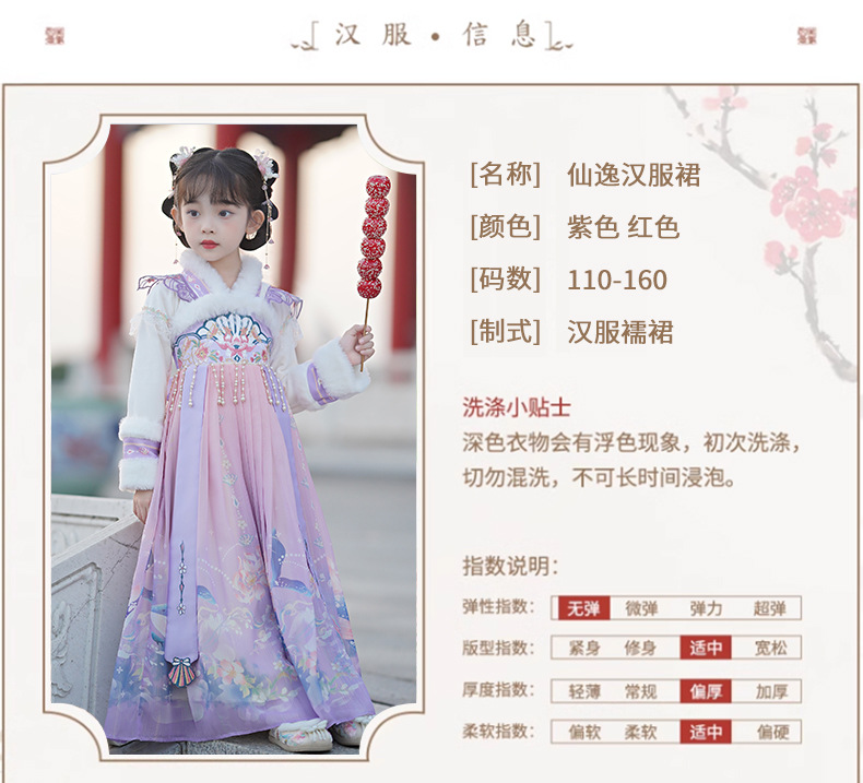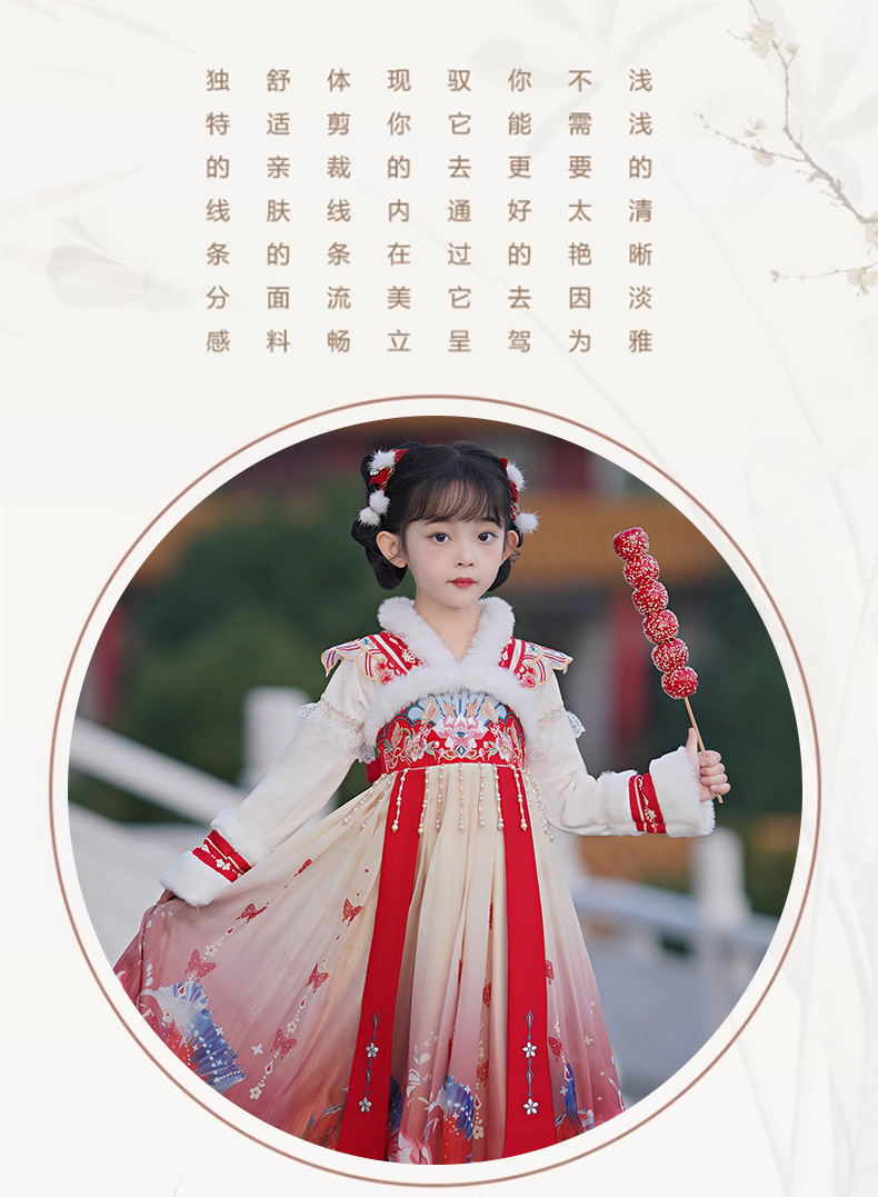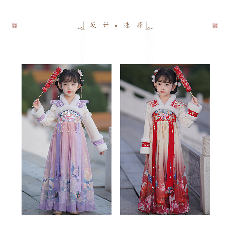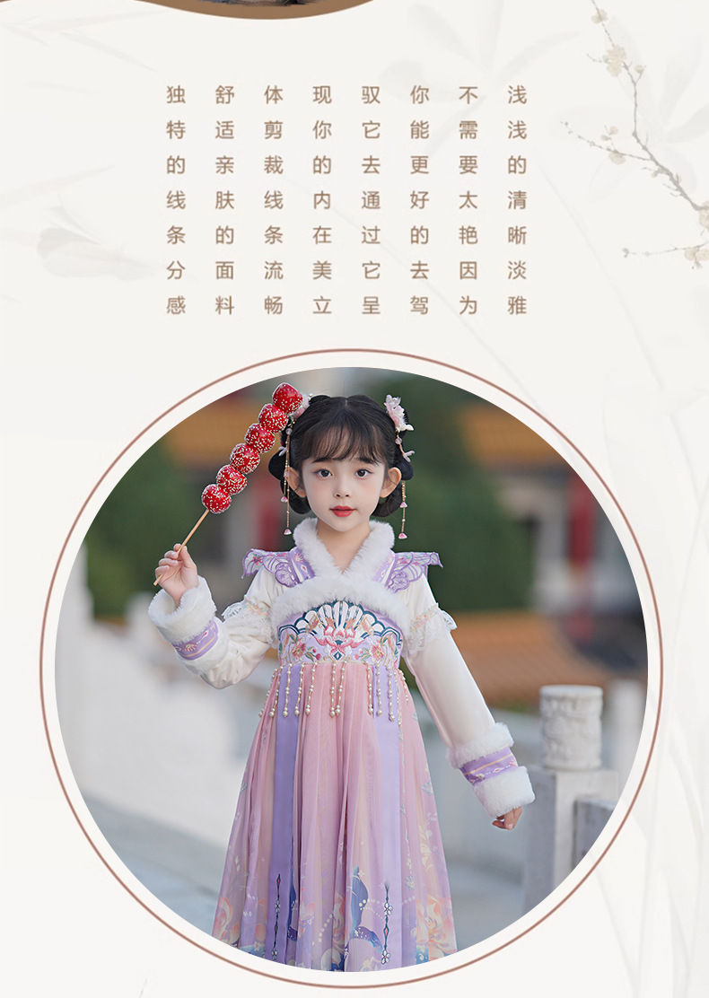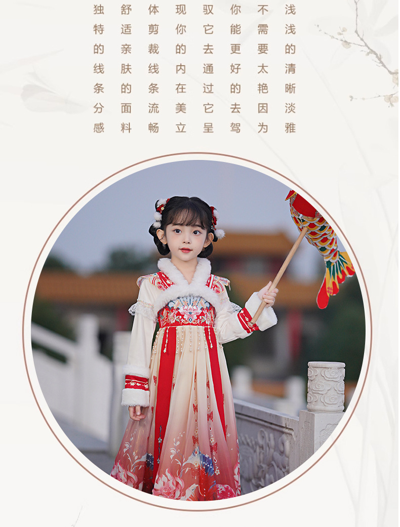Hanfu 소녀의 겨울 2023 새로운 새해 전야 옷 겨울 옷 어린이 고대 의상 중국 스타일 당나라 세트 새해 옷스토어 가기