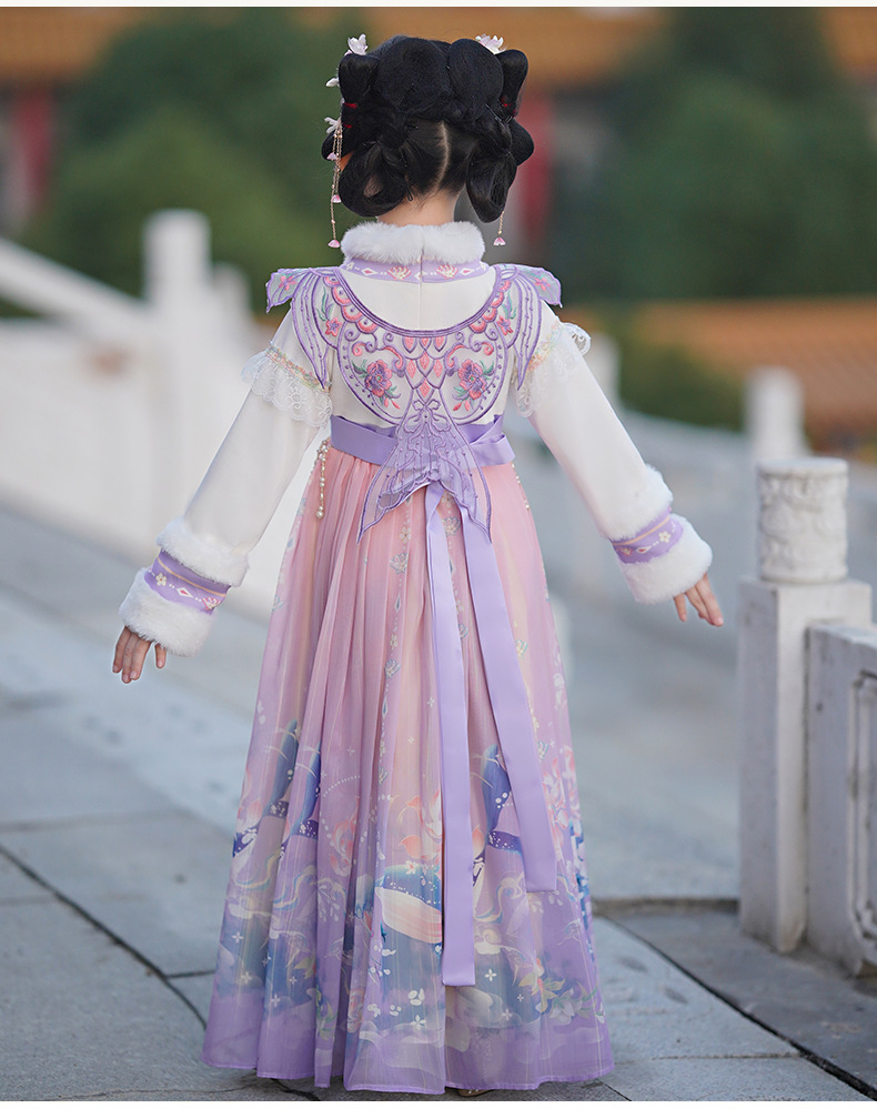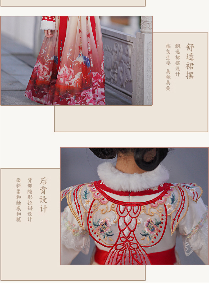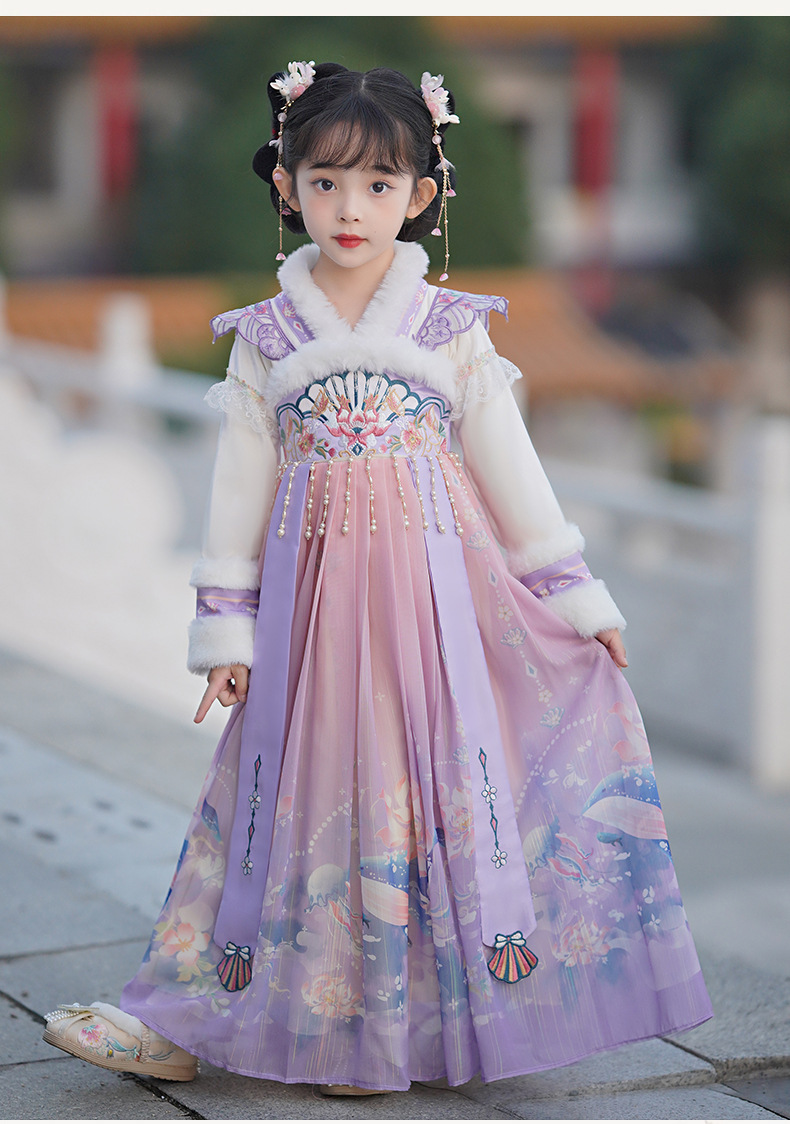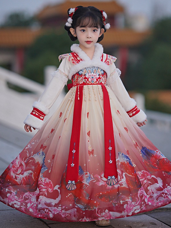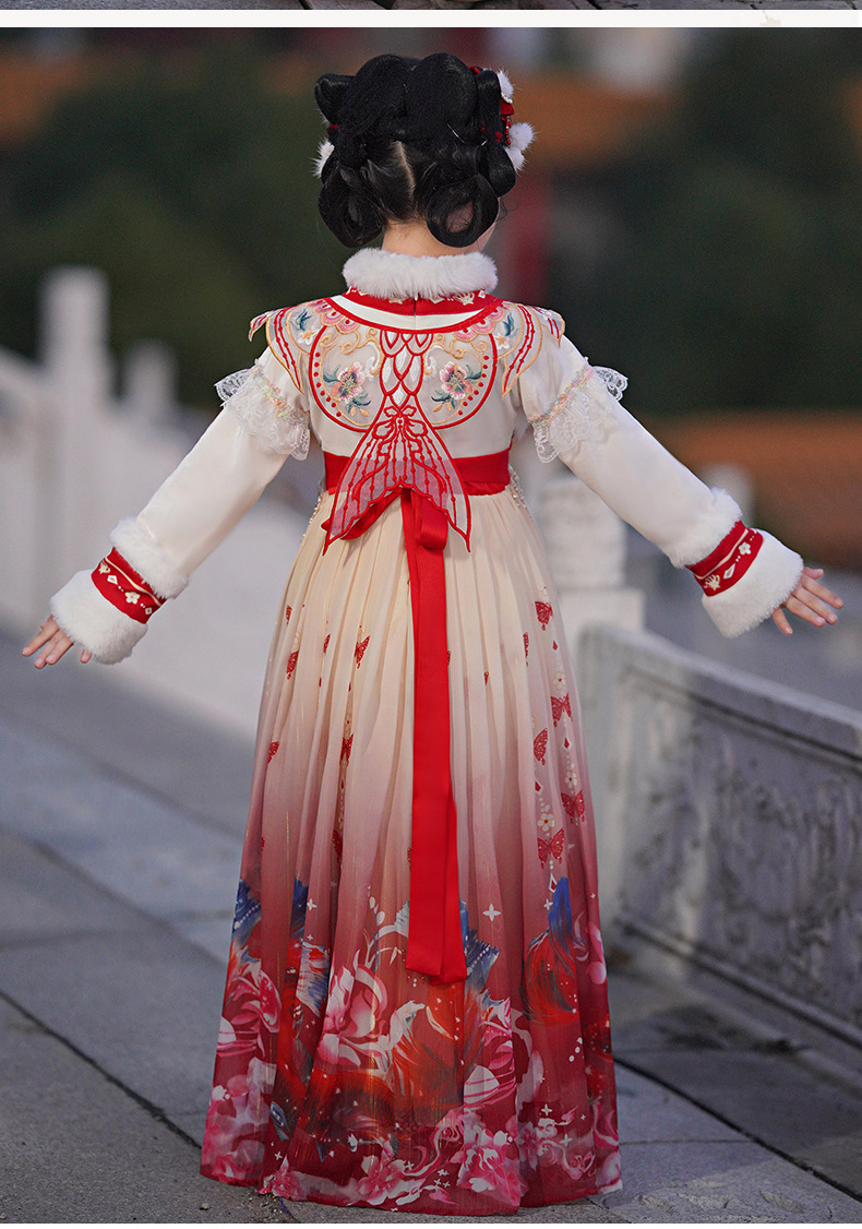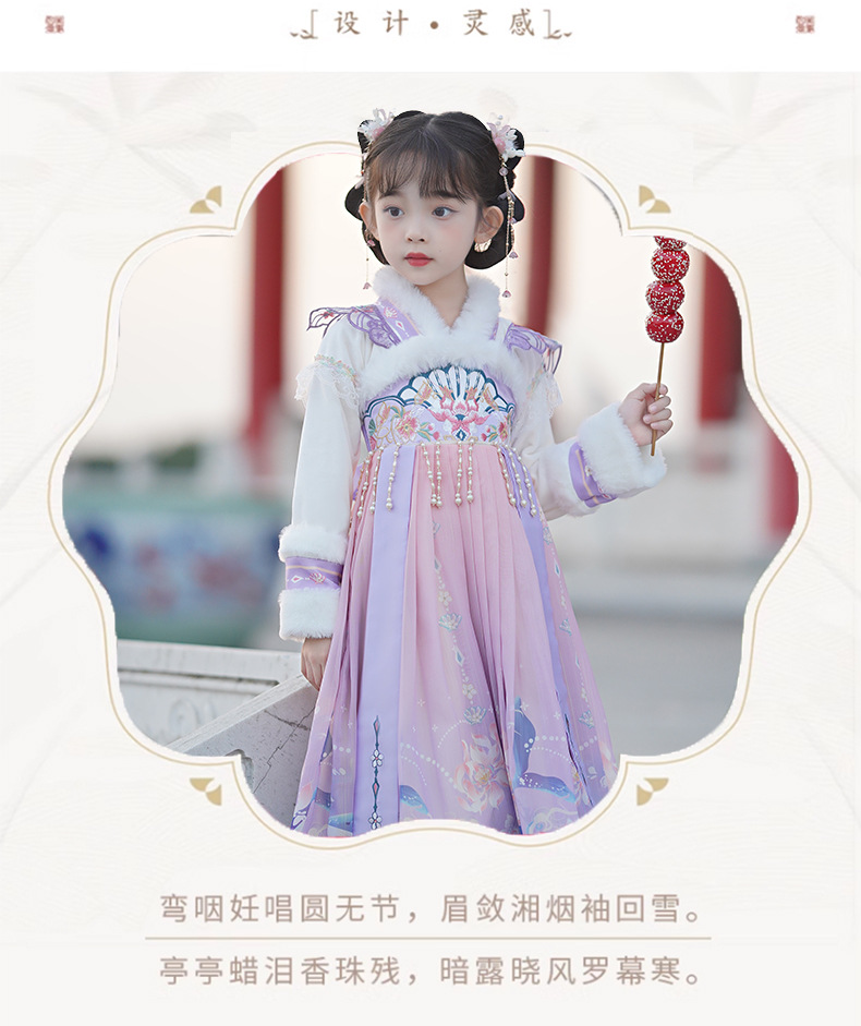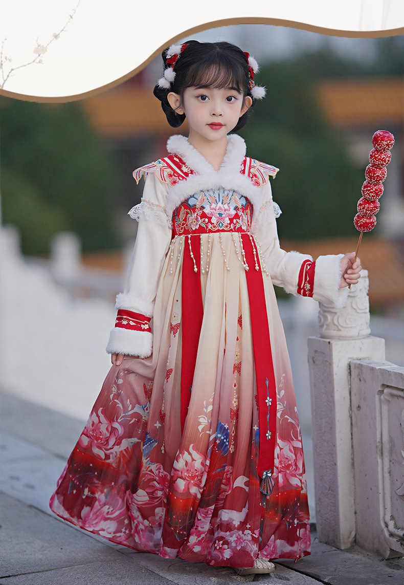 Hanfu 소녀의 겨울 2023 새로운 새해 전야 옷 겨울 옷 어린이 고대 의상 중국 스타일 당나라 세트 새해 옷