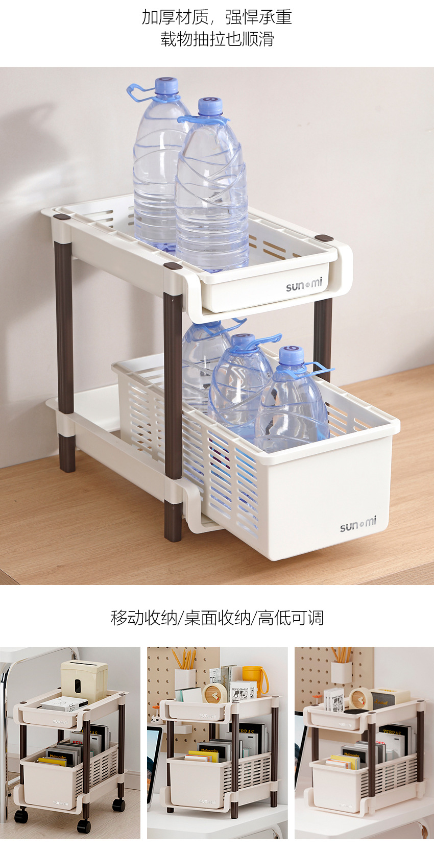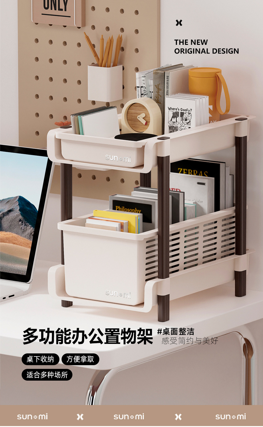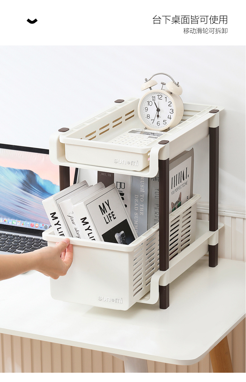 레트로 학생 데스크탑 스토리지 랙 테이블 아래 이동식 풀리 사무실 침실 책상 가방 보관 책장스토어 가기