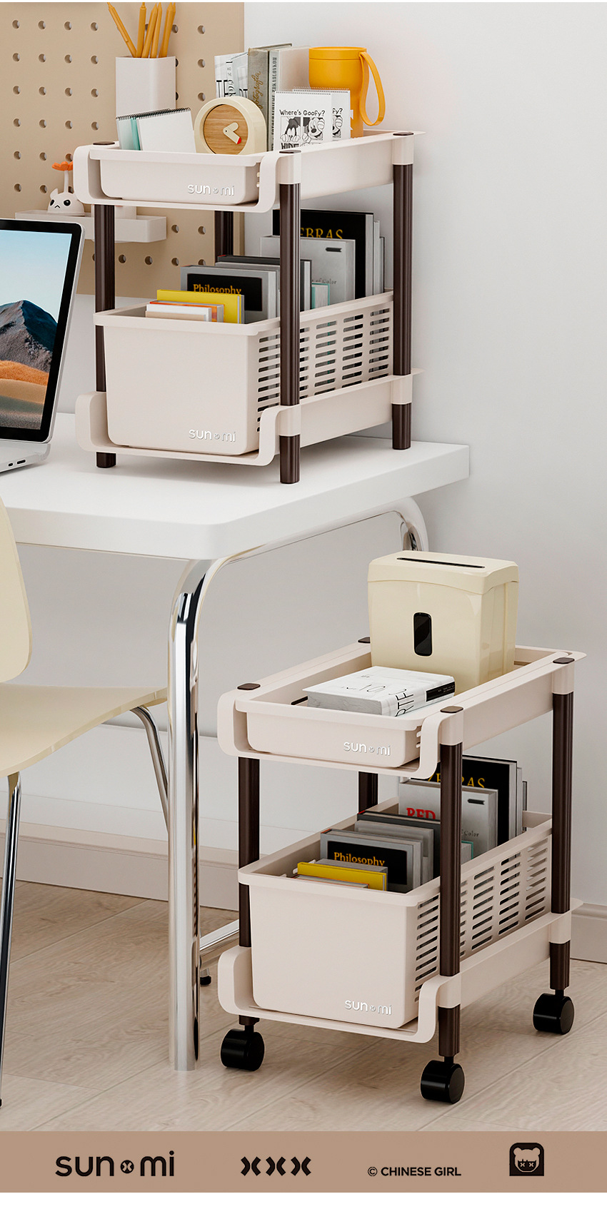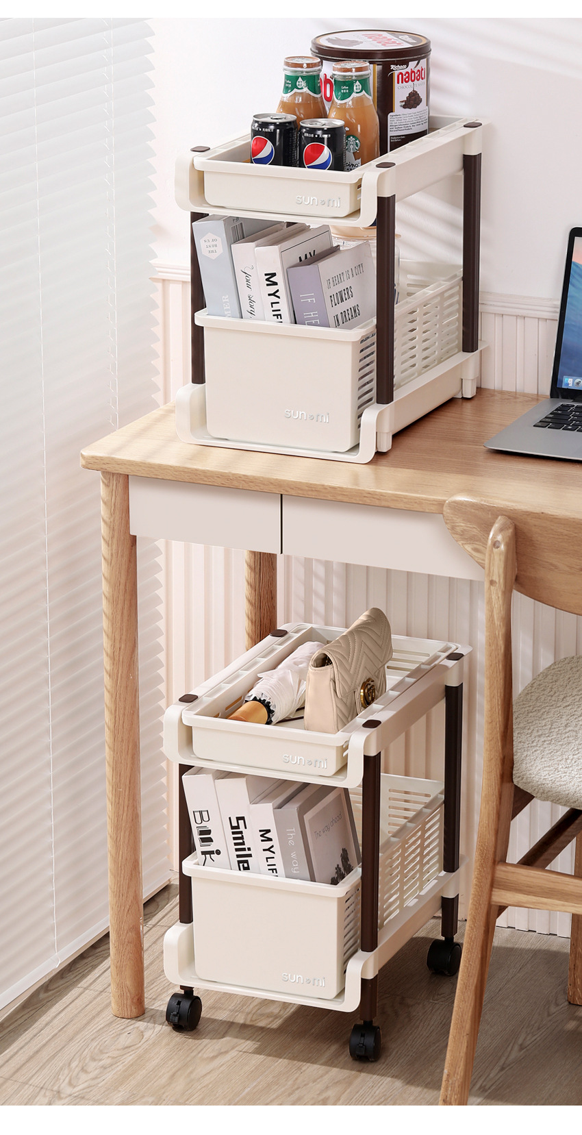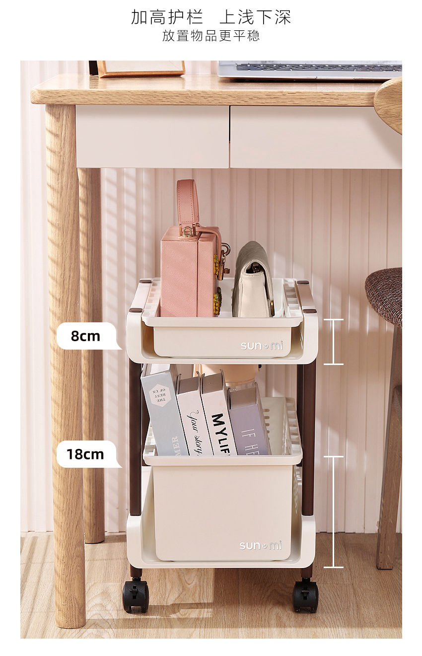 레트로 학생 데스크탑 스토리지 랙 테이블 아래 이동식 풀리 사무실 침실 책상 가방 보관 책장