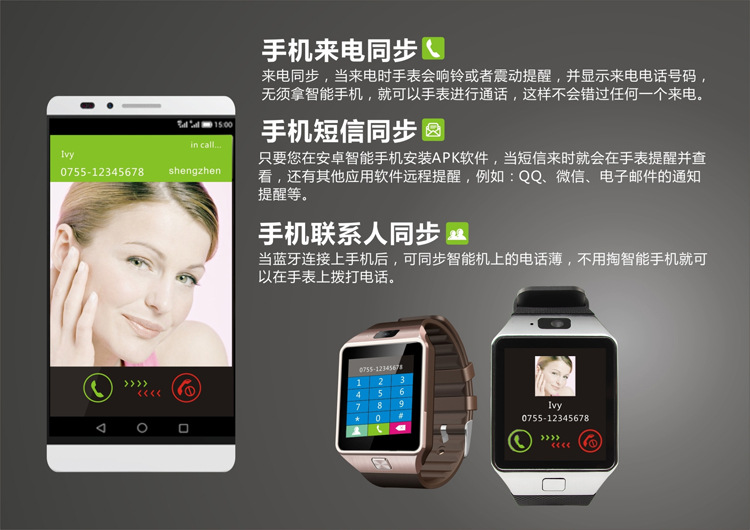 국경 간 대외 무역 DZ09 카드를 삽입하여 사진을 찍고 인터넷 통화를 할 수 있는 다기능 스마트 시계 전화 시계