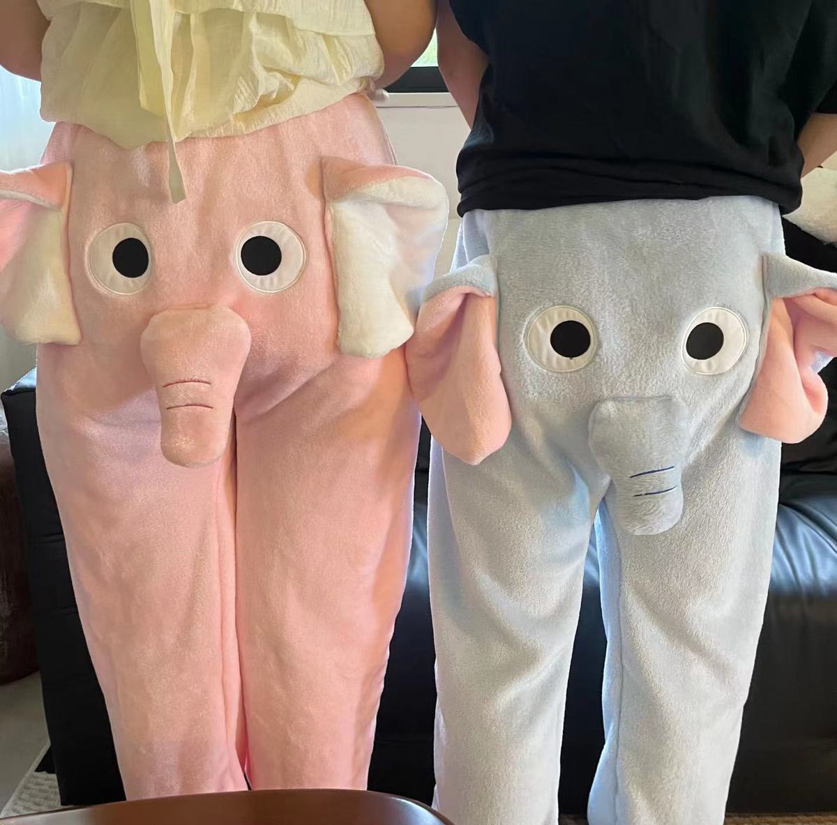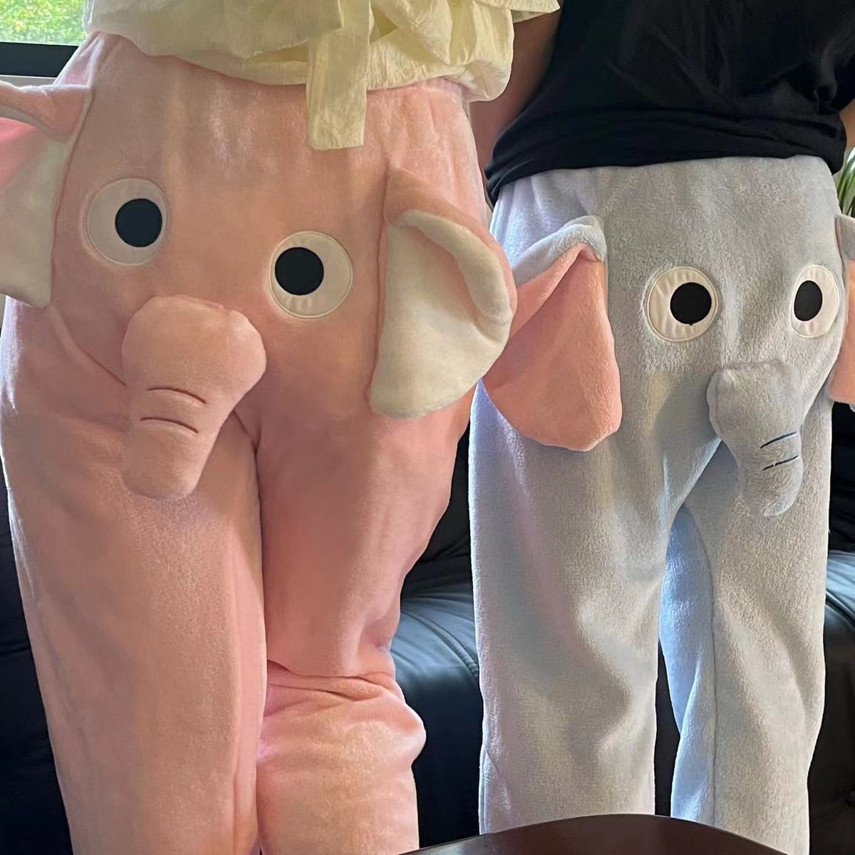 플란넬 두꺼운 가정 옷 세트 귀여운 재미 삐걱 거리는 코끼리 바지 잠옷 가을과 겨울