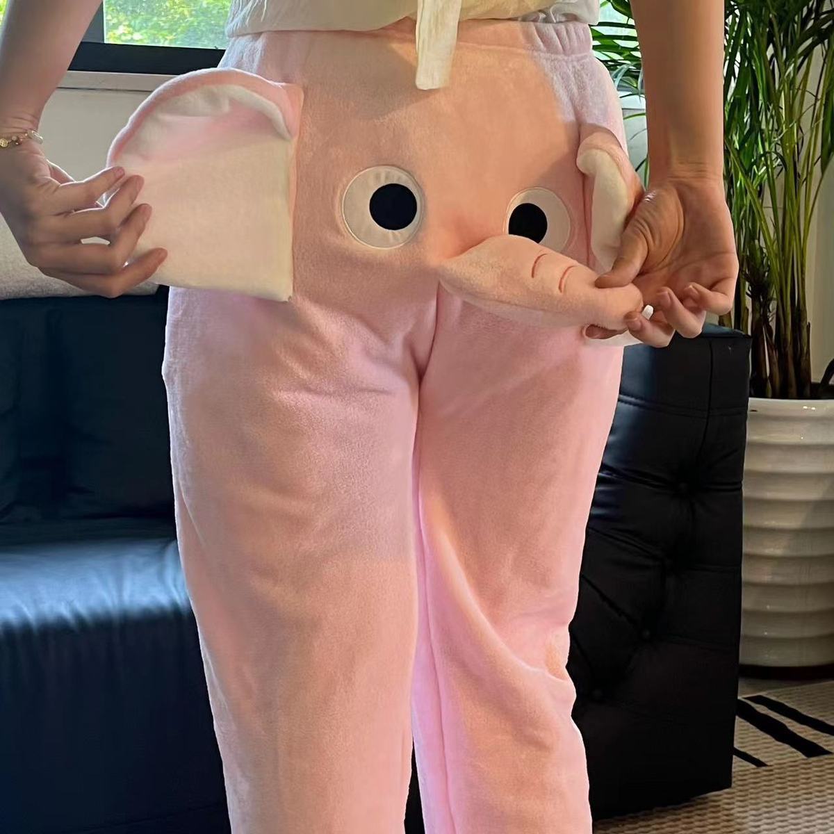 플란넬 두꺼운 가정 옷 세트 귀여운 재미 삐걱 거리는 코끼리 바지 잠옷 가을과 겨울스토어 가기
