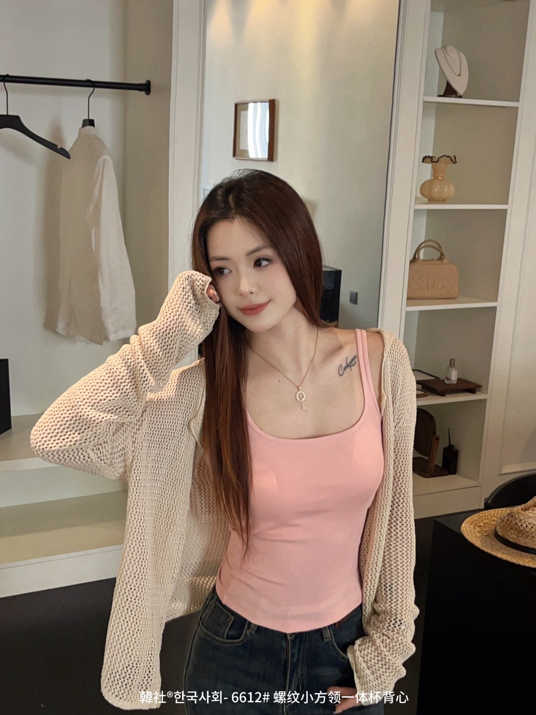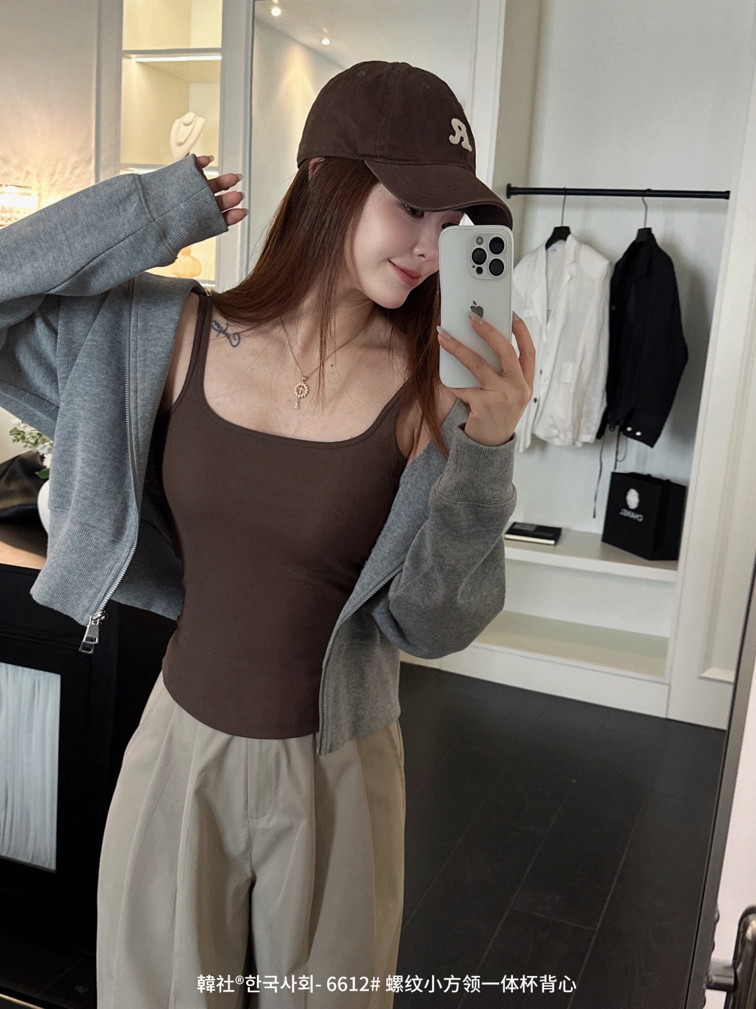 韓社®한국사회- 6612# 螺纹小方领一体杯背心
