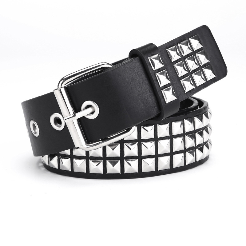 유럽과 미국의 스퀘어 구슬 리벳 벨트 금속 피라미드 벨트 남성과 여성 크로스 국경 벨트 펑크 하드웨어 청바지 벨트