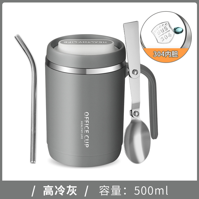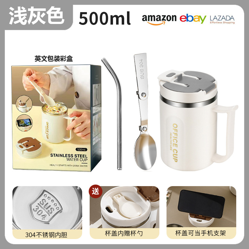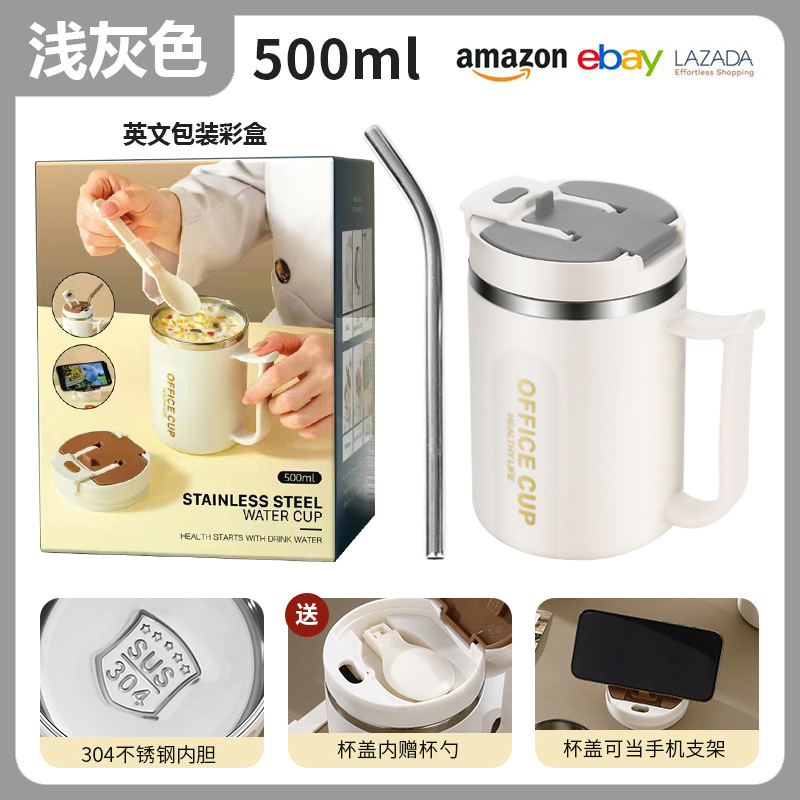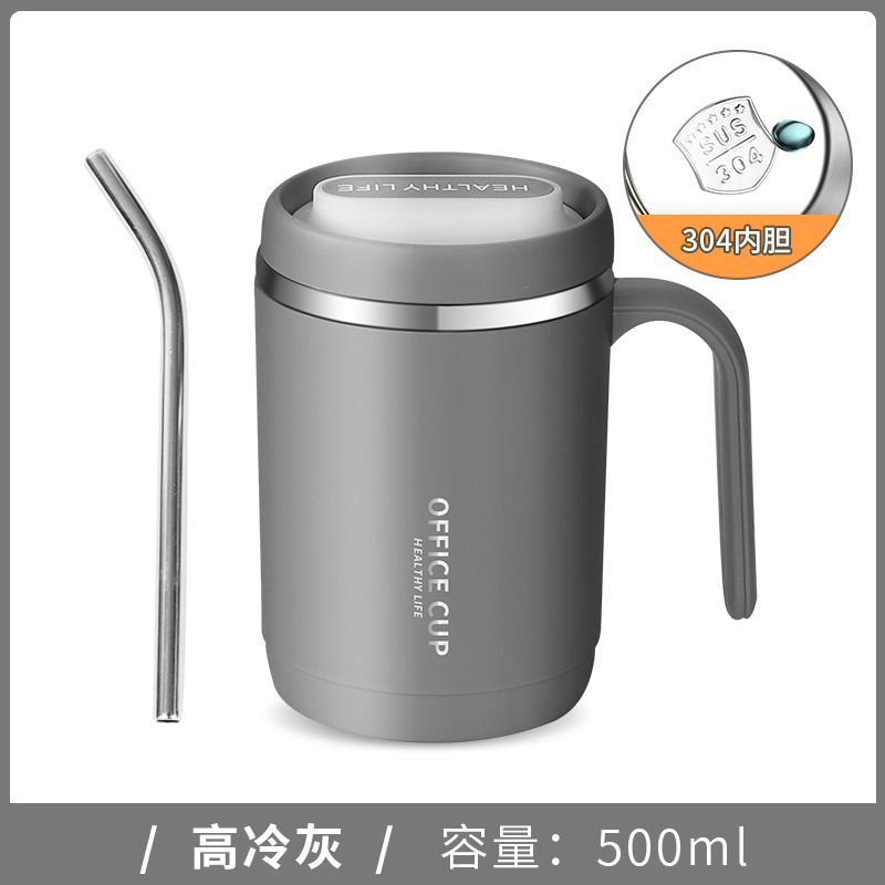 • 304 스테인리스 찻잔 (라이트 그레이) + 빨대