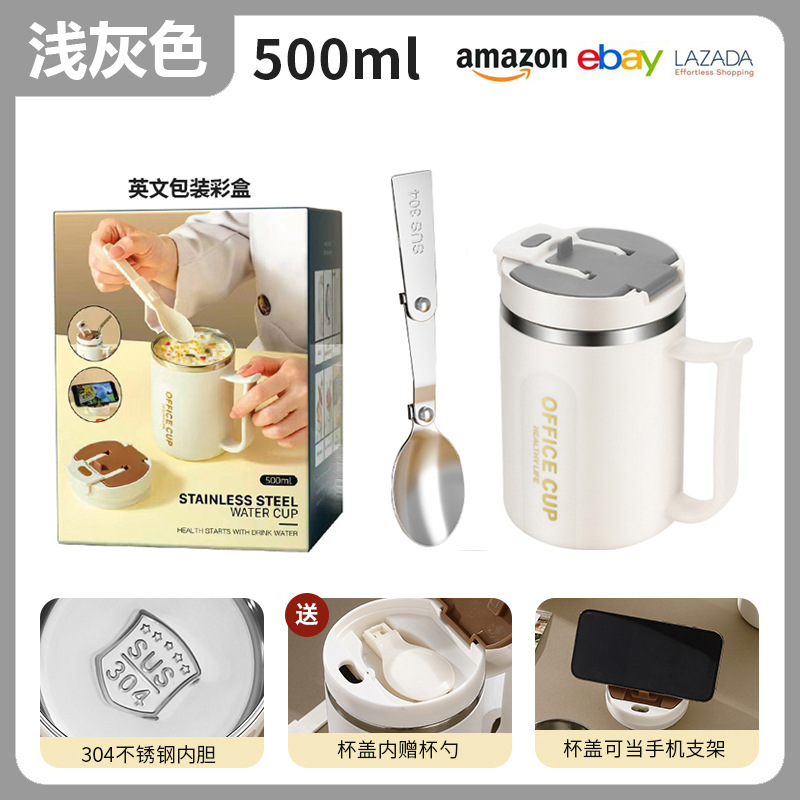 • 304 스테인리스 머그(라이트 그레이) + 접이식 스푼