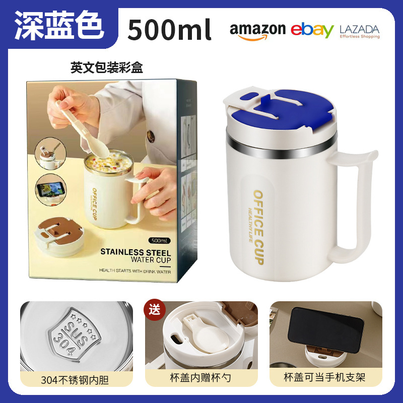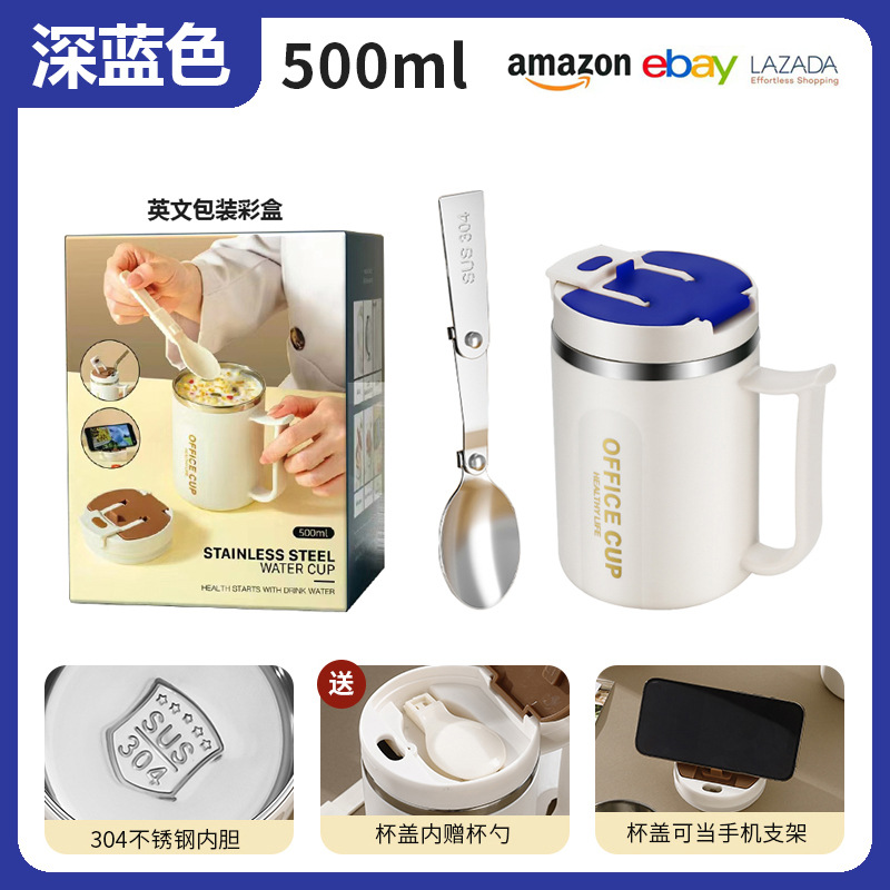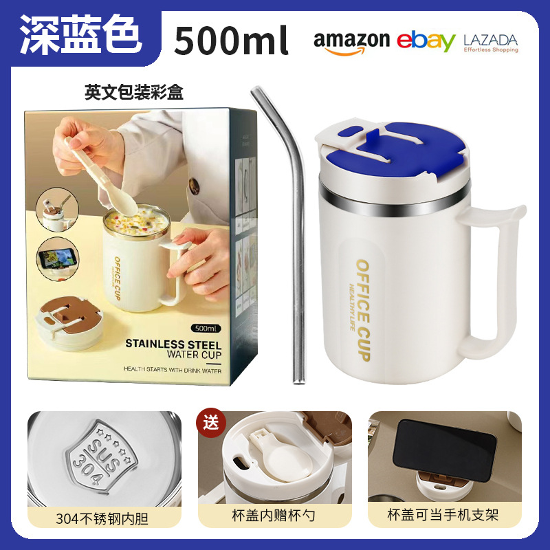 • 304 스테인리스 찻잔 (다크 블루) + 빨대