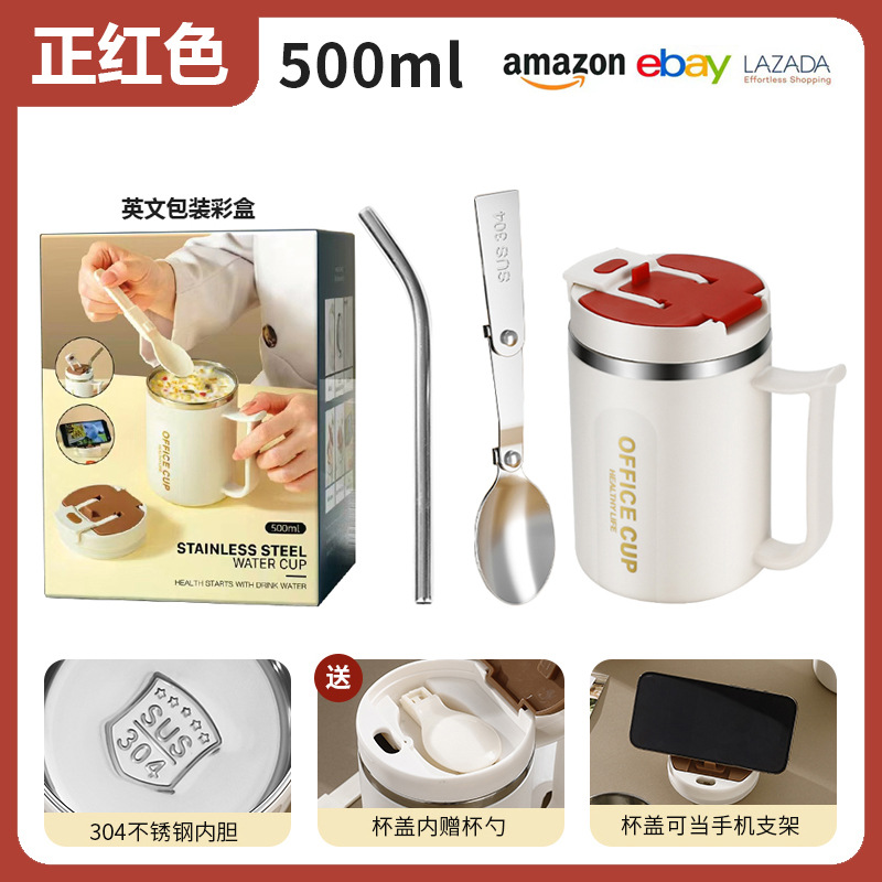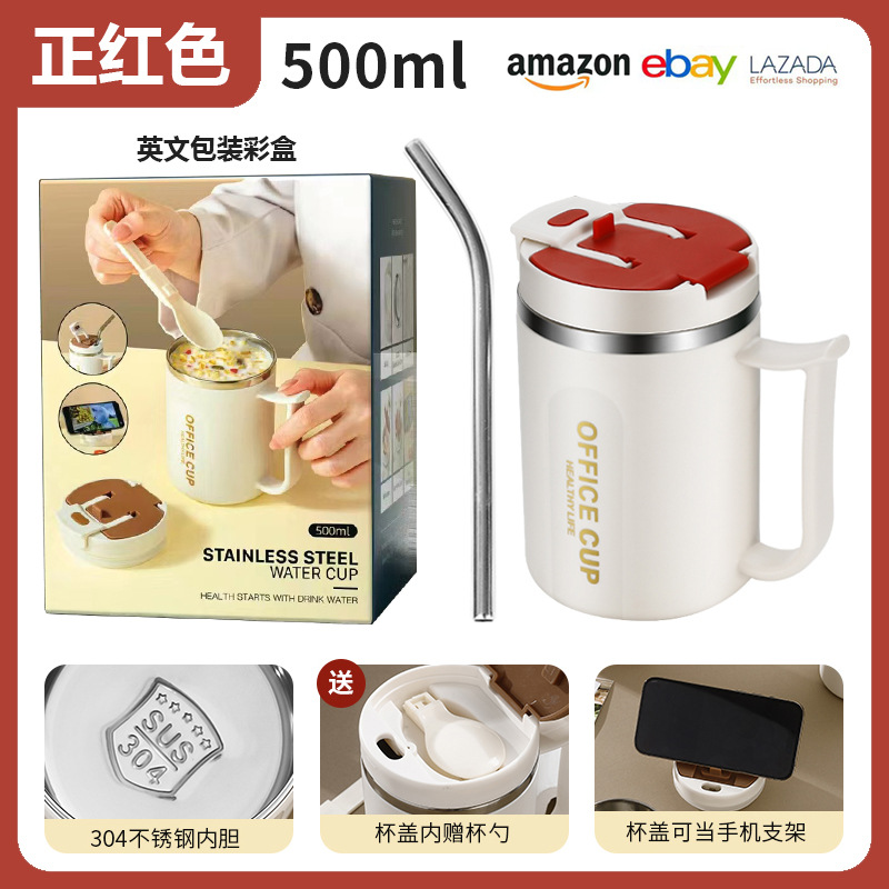 • 304 스테인레스 스틸 머그잔 (포지티브 레드) + 빨대