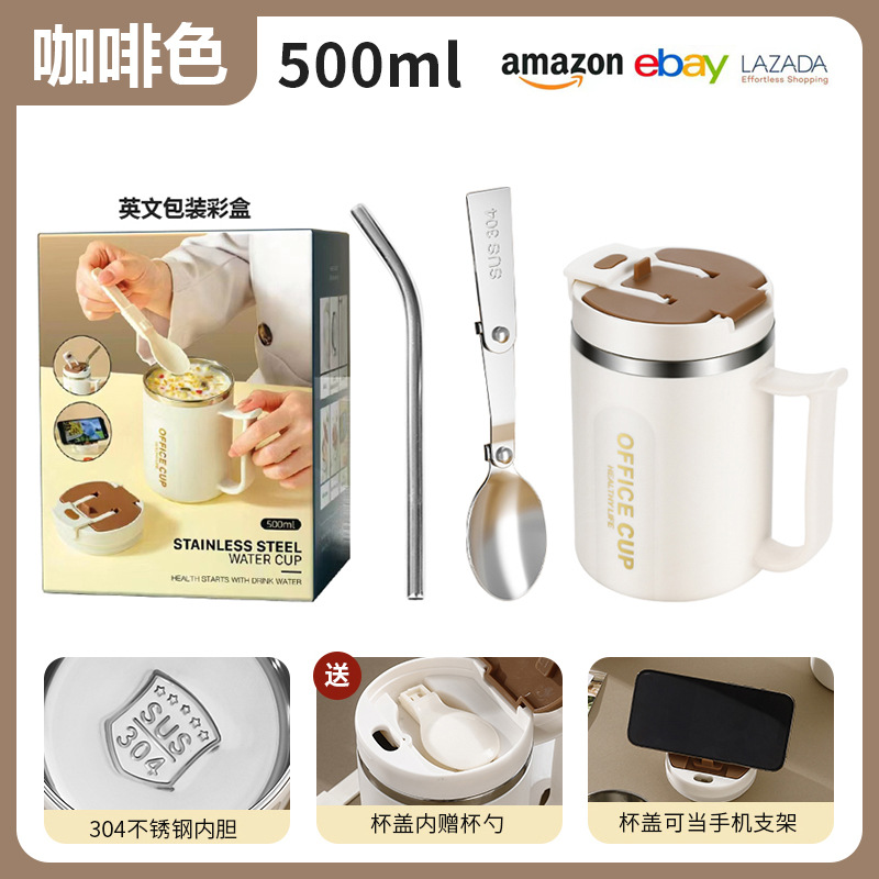 • 304 스테인리스 머그(브라운) + 빨대 + 접이식 스푼
